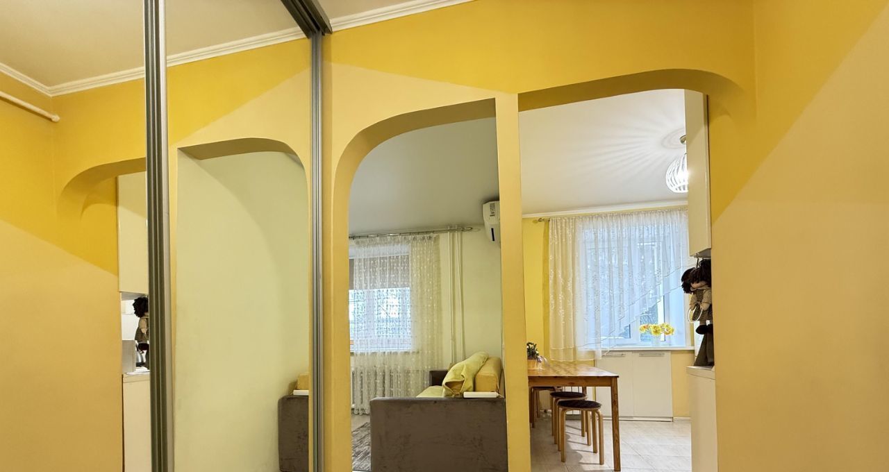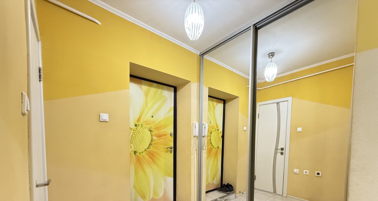 В коридоре вместительный шкаф купе с зеркалами во всю стену