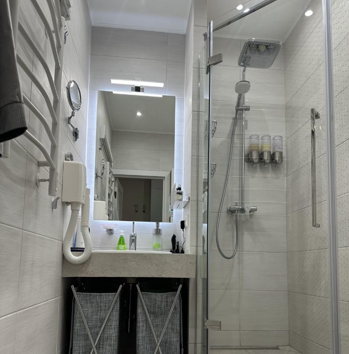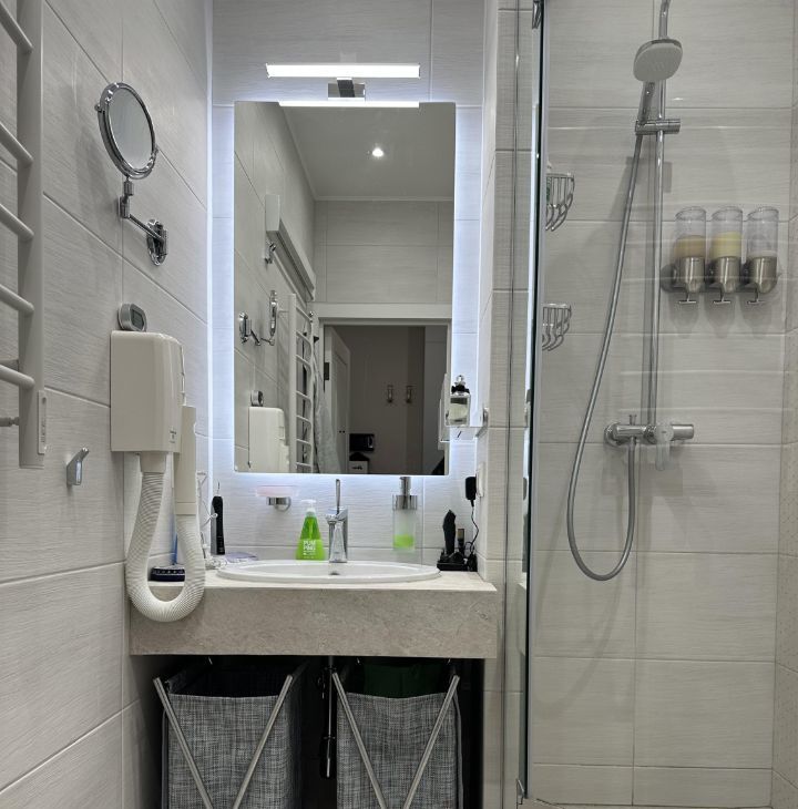 современная планировка, качественные материалы отделки, стильная мебель и премиальная техника и сантехника. Санузел совмещенный и полностью оборудован всем необходимым.