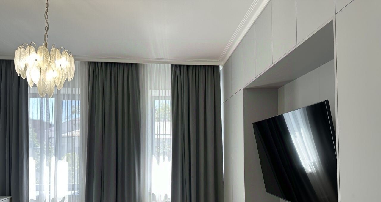 Особенности: Большие окна наполняют комнату светом, а ухоженная придомовая территория создает приятную атмосферу для отдыха и прогулок.