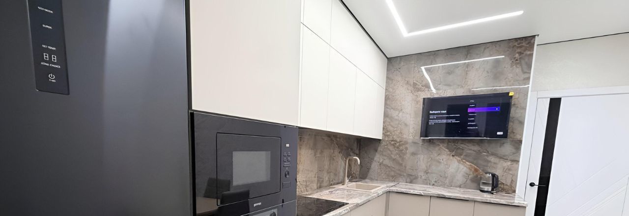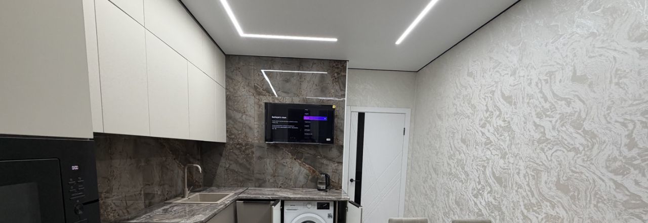 Квартира с дизайнерским ремонтом, что создаёт приятную атмосферу для жизни. В комнате и на кухне есть вся необходимая мебель. Кухня оборудована современной техникой: кондиционером, холодильником, посудомоечной машиной и телевизором. В ванной комнате установлена ванна, а также есть стиральная машина.