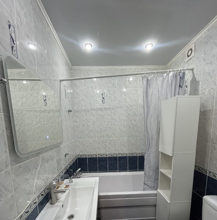 В квартире выполнен косметический ремонт, поэтому она выглядит свежо и аккуратно. Есть вся необходимая мебель и техника: кондиционер, холодильник и стиральная машина. Кухня оборудована современной мебелью и техникой. В ванной комнате установлена ванна, а удобный совмещенный санузел экономит пространство. Также имеется балкон, где можно наслаждаться свежим воздухом.
