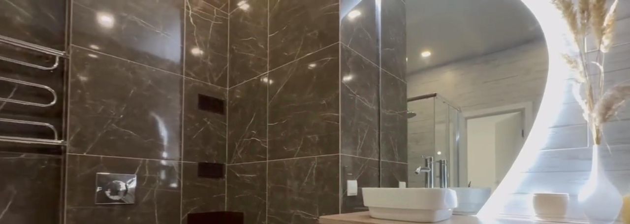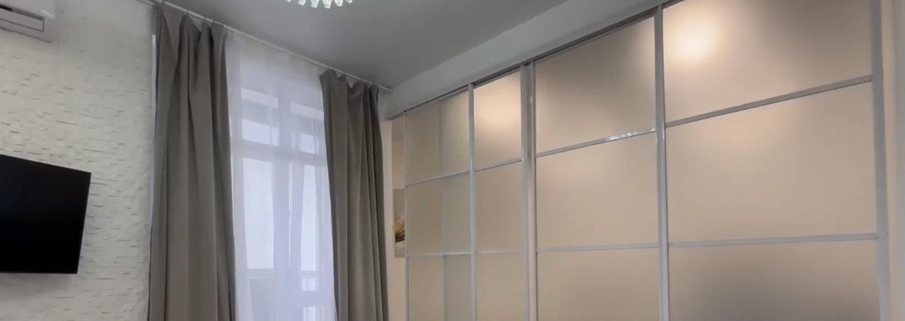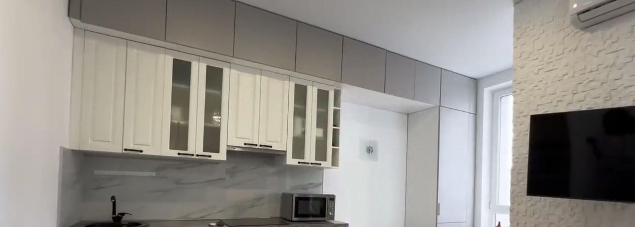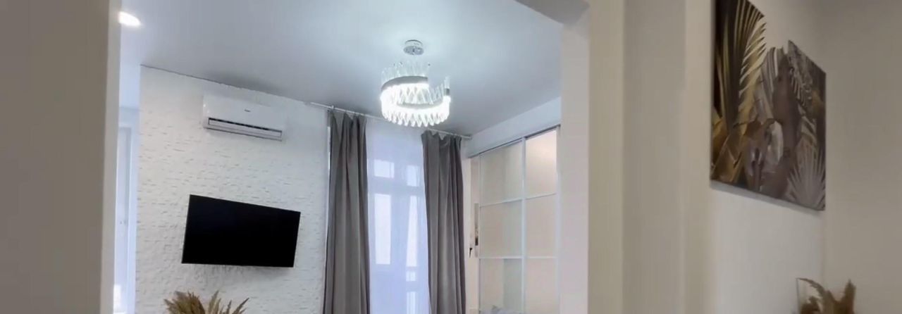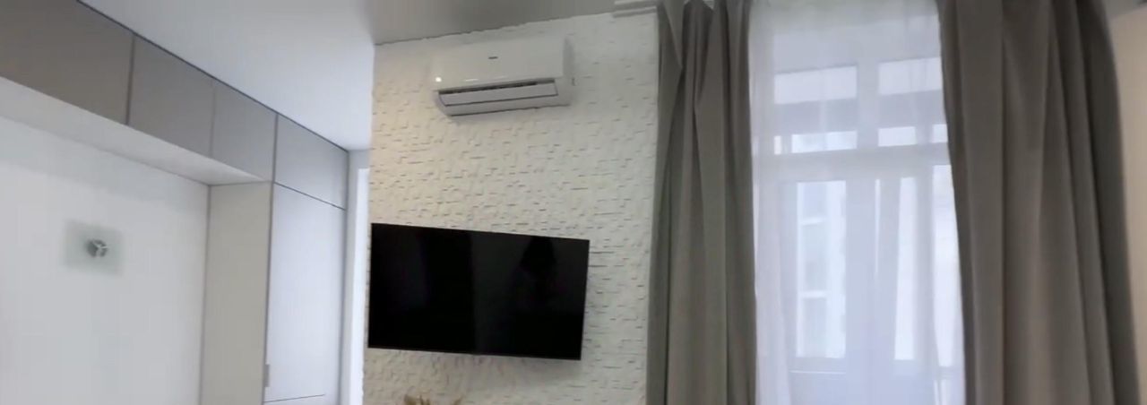 Квартира с дизайнерским ремонтом, полностью готова для комфортного проживания. В гостиной и на кухне установлена современная мебель. В наличии вся необходимая техника: кондиционер, холодильник, посудомоечная и стиральная машины, а также телевизор. Санузел совмещённый, оборудован душевой кабиной. В квартире также есть балкон, где можно наслаждаться свежим воздухом.