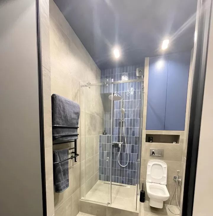 В квартире сделан дизайнерский ремонт, поэтому можно сразу заехать и жить с комфортом. Установлена вся необходимая техника: кондиционер, холодильник, посудомоечная машина, телевизор и стиральная машина. На кухне и в комнате есть мебель, что делает проживание ещё более удобным. Ванная комната оборудована современной душевой кабиной.