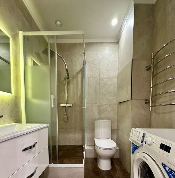 Квартира светлая и просторная, с высотой потолков 2.8 метра. В квартире есть всё необходимое для комфортного проживания: современный ремонт, удобная мебель и вся необходимая бытовая техника. Просторная кухня и совмещённый санузел с качественной сантехникой сделают ваше пребывание здесь максимально комфортным.