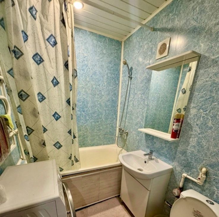 Благодаря наличию необходимой мебели на кухне и в комнате, вы сможете комфортно расположиться с первых дней. Здесь вас ждет вся необходимая техника: холодильник, телевизор и стиральная машина, поэтому можно не беспокоиться о бытовых удобствах. Санузел совмещенный и оборудован ванной.
