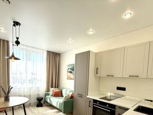 В квартире сделан качественный евроремонт. Просторная жилая комната площадью 17,3 кв. м и кухня 12,7 кв. м создают атмосферу уюта и удобства. Есть отдельный санузел и лоджия. В квартире останется мебель, текстиль, кондиционер.