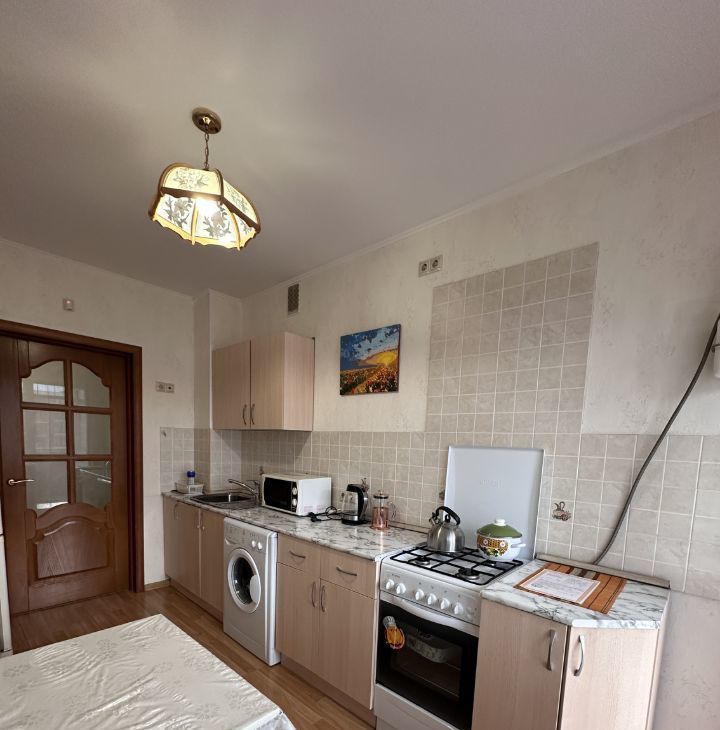 В квартире имеется все необходимое : кухонный гарнитур , газовая плита , духовой шкаф , микроволновая печь , посуда , раскладной диван , 2-ух спальная кровать , телевизор , кондиционер , рабочее место , отдельная гардеробная зона , ванная , стиральная машина. В квартире имеется просторный балкон с видом на набережную Казани!