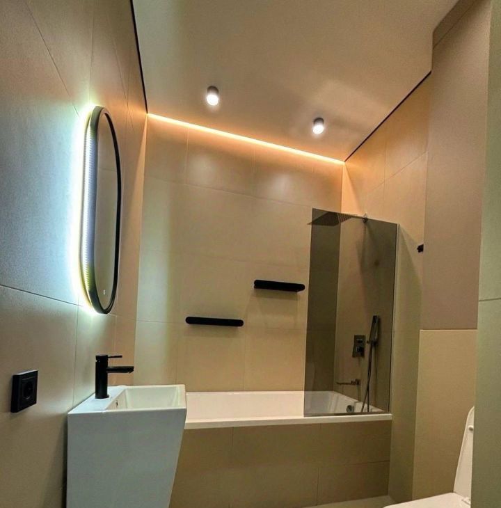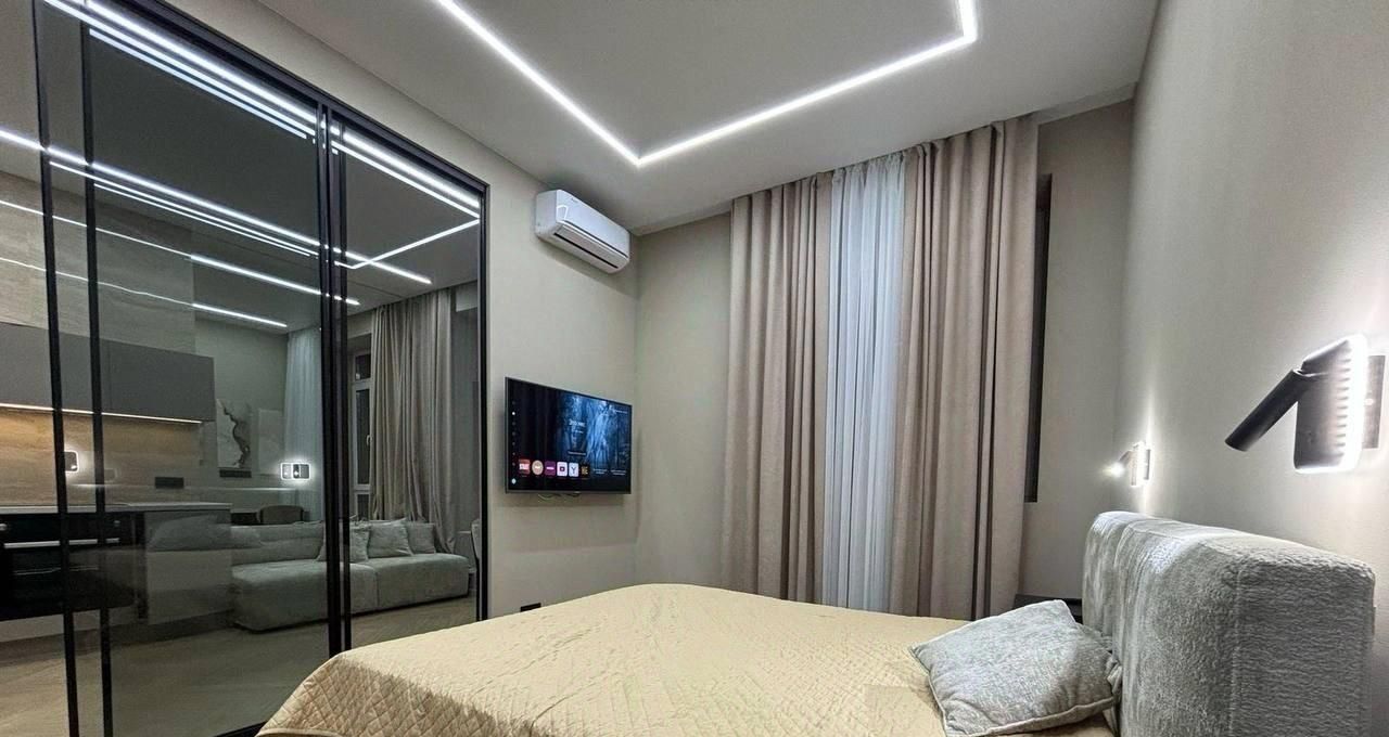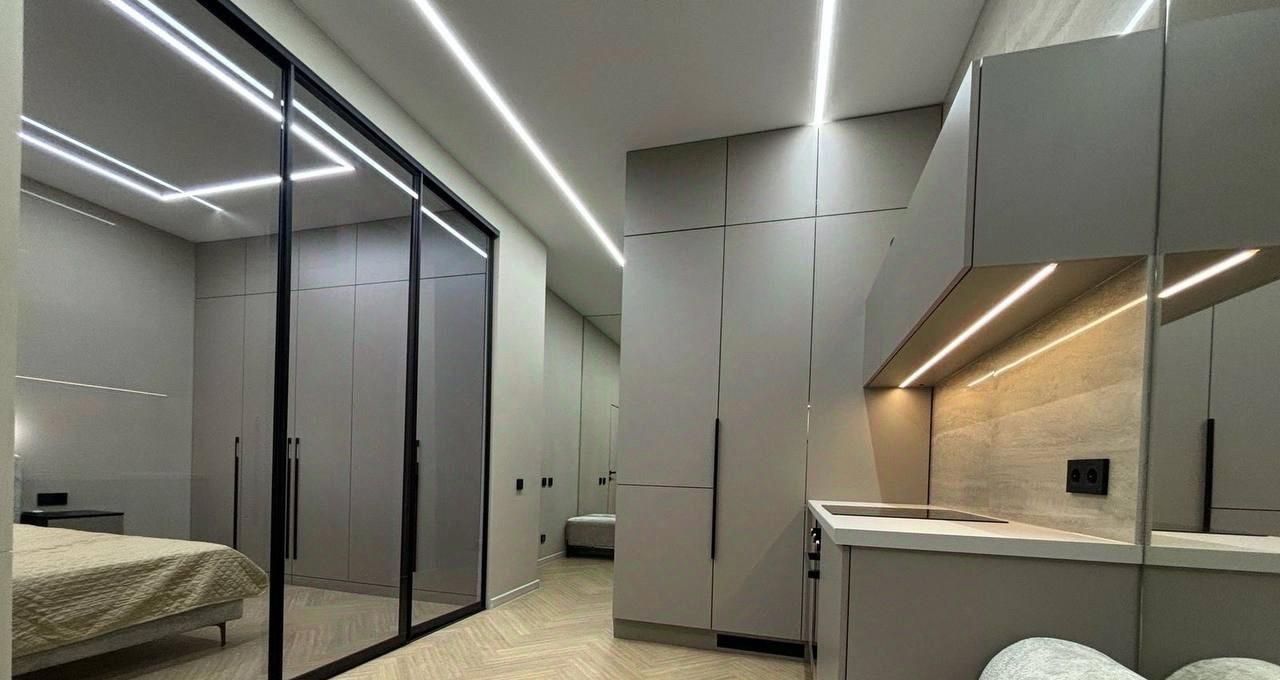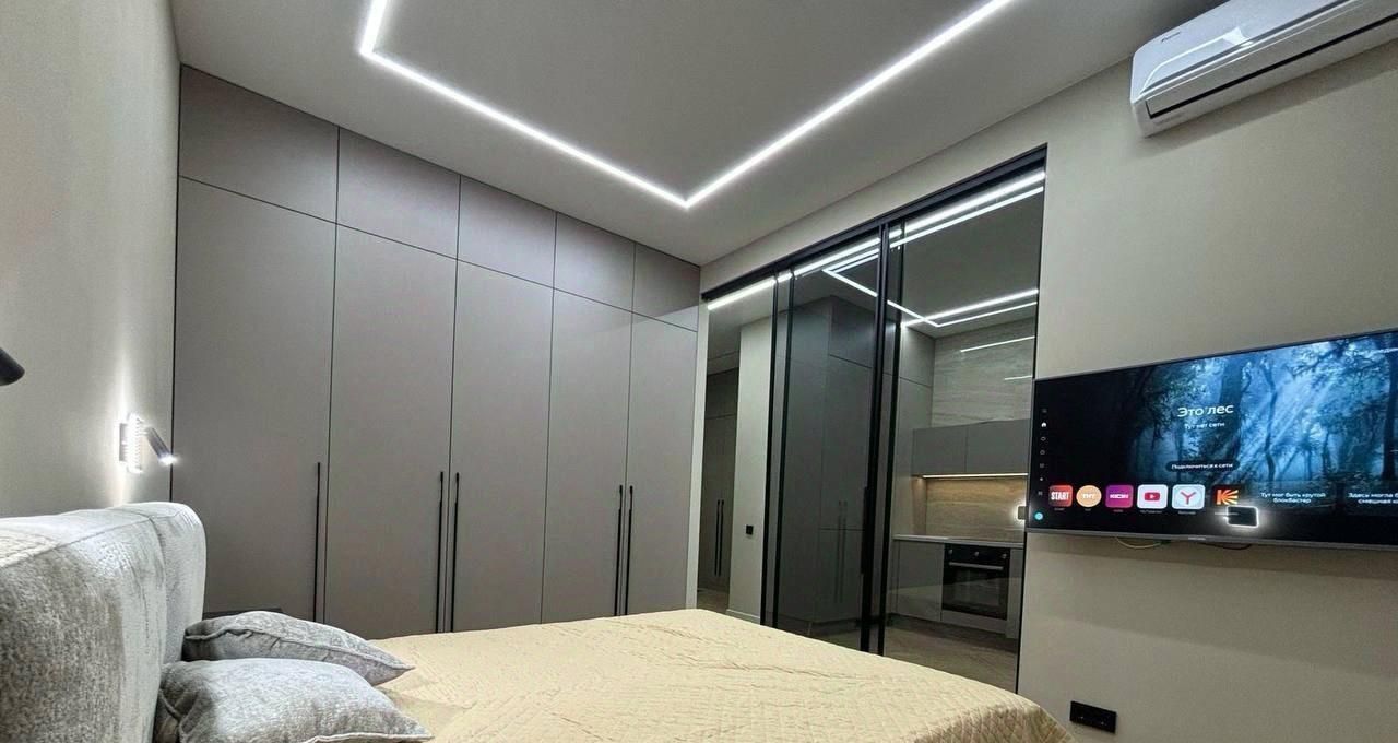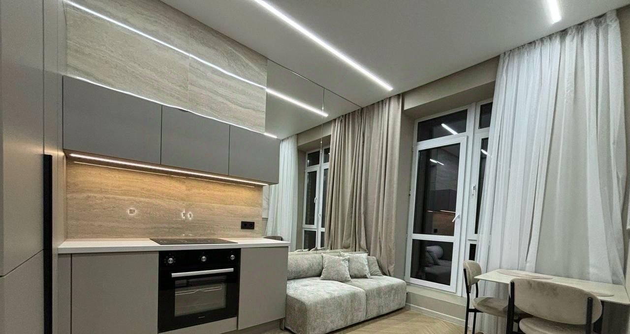Квартира полностью готова для комфортного проживания. В комнате и на кухне есть мебель, которая разработана с учётом всех современных требований к удобству и стилю. Ванная комната оборудована ванной, что позволит расслабиться после напряжённого дня. Из техники в наличии есть кондиционер, холодильник, посудомоечная машина, телевизор и стиральная машина — всё, что нужно для комфортной жизни. Также имеется интернет.