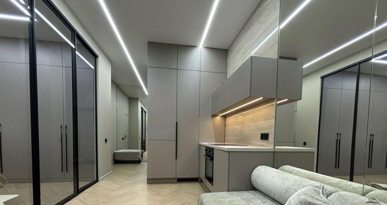 Сдаётся в аренду уютная однокомнатная квартира с дизайнерским ремонтом, расположенная на 7 из 8 этажей современного дома, построенного в 2021 году. Общая площадь квартиры составляет 37 кв. м, а высота потолков — 3 метра, что создаёт ощущение простора и света.