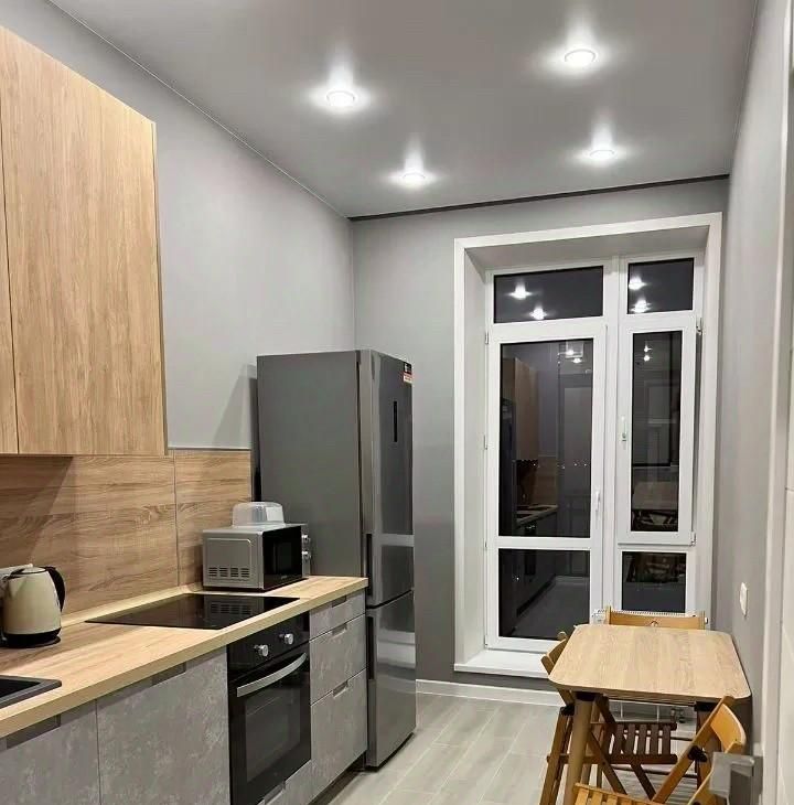 Сдаётся в аренду стильная однокомнатная квартира в современном доме, построенном в 2021 году. Квартира расположена на 4 этаже 8-этажного здания. Общая площадь составляет 39 кв. м, кухня — 11 кв. м. Высокие потолки (3 метра) и окна, выходящие на улицу, делают пространство светлым и просторным.