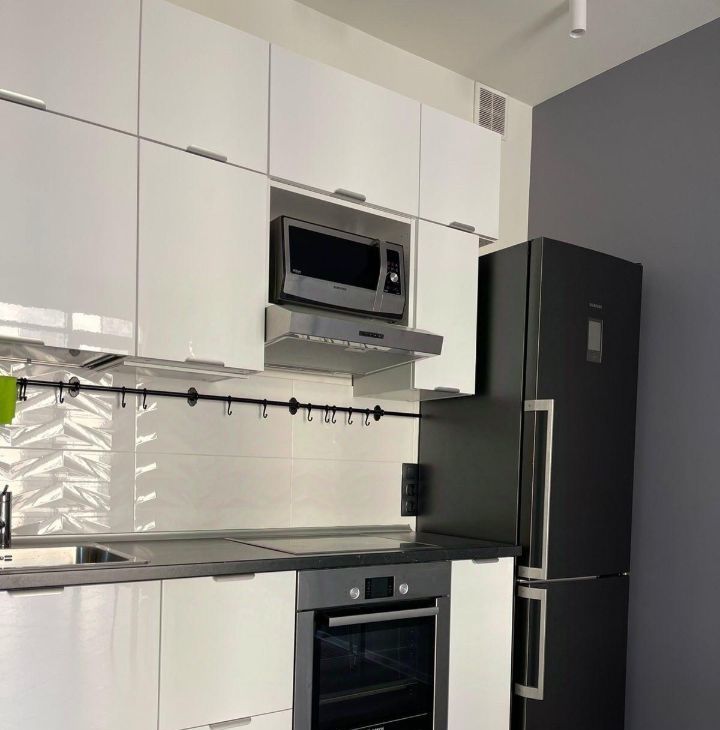 Сдается в аренду стильная однокомнатная квартира в Казани. Квартира расположена на 4-м этаже 8-этажного кирпичного дома. Общая площадь квартиры составляет 54 кв. м, из которых 24 кв. м — жилая площадь и 20 кв. м — просторная кухня. Высокие потолки 3.1 метра создают ощущение простора и уюта.
