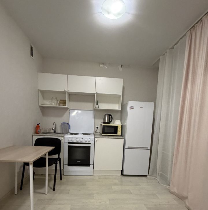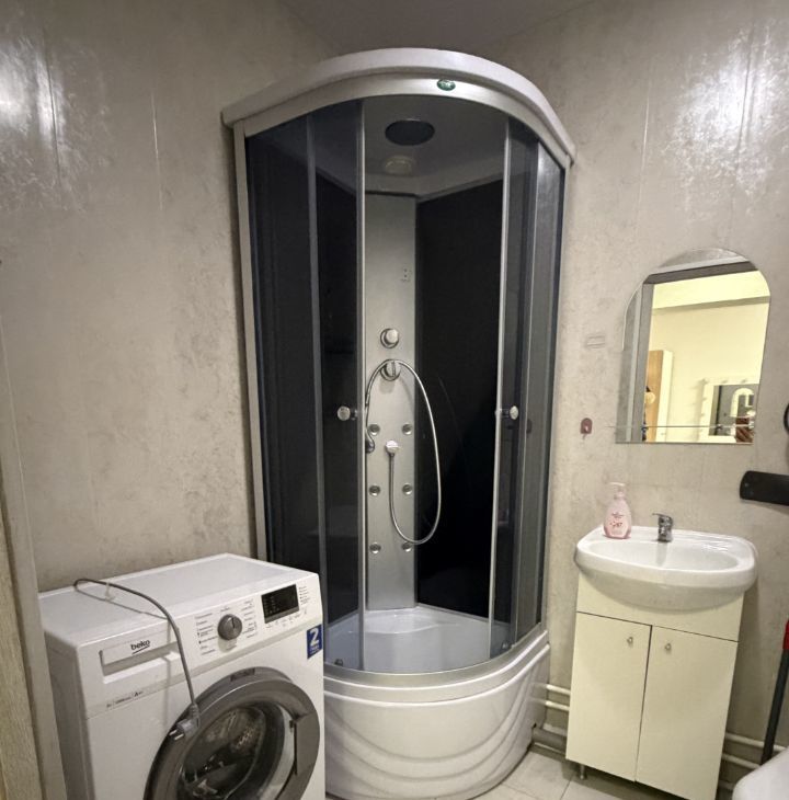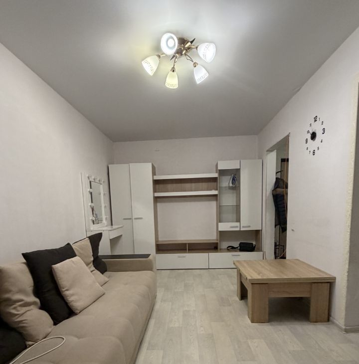 В квартире выполнен косметический ремонт. Комфортная жилая площадь составляет 20 кв. м, а просторная кухня — 10 кв. м. Квартира полностью меблирована, на кухне есть вся необходимая мебель и техника, включая холодильник и стиральную машину. Ванная комната оборудована душевой кабиной. Есть лоджия, где можно уютно провести вечер.