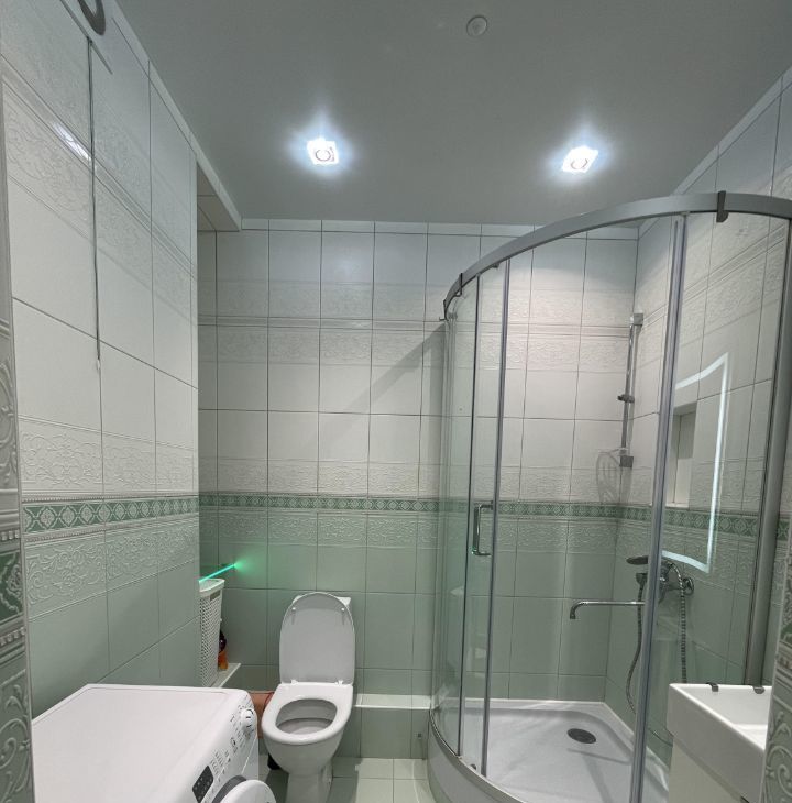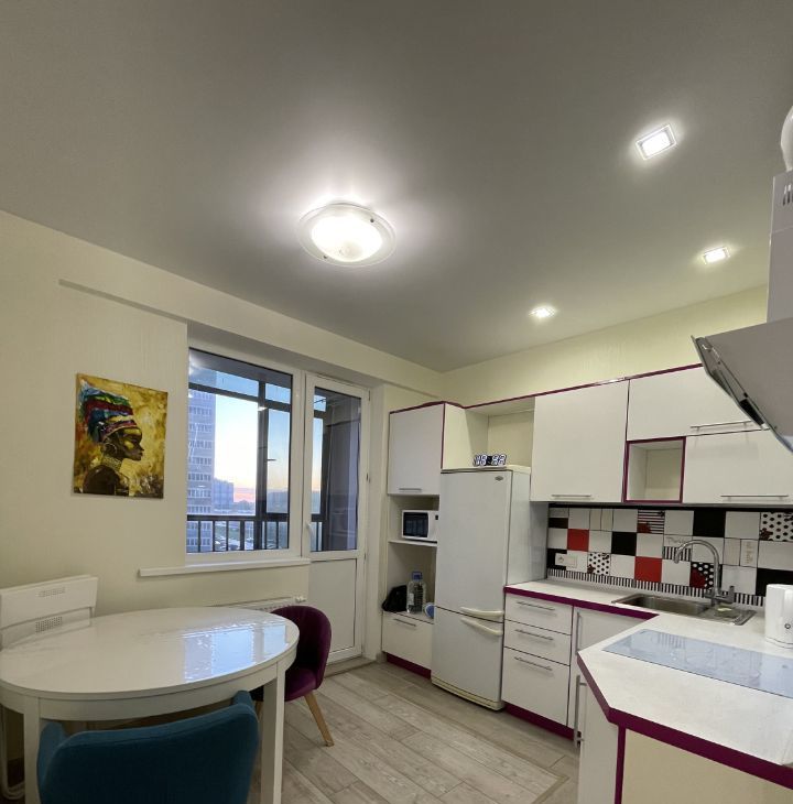 В квартире имеется все необходимое : кухонный гарнитур , индукционная плита , микроволновая печь , посуда , раскладной диван , 2-ух спальная кровать , кондиционер , рабочее место , отдельная гардеробная комната , душевая кабина , стиральная машина. В квартире имеется просторный балкон.