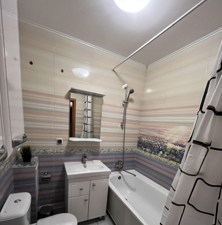 Сдается уютная теплая однокомнатная квартира для граждан РФ. Общая площадь — 40 кв. м, просторный зал, кухня — 8 кв. м. Квартира расположена на 11 этаже 12-этажного дома, построенного в 2014 году. Высота потолков — 2.7 метра. Из окон открывается вид на улицу, есть лоджия.