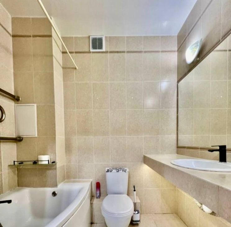 Интерьер квартиры выполнен в современном стиле с использованием качественных материалов. В комнате и на кухне есть необходимая мебель, поэтому можно сразу заехать и жить. Просторная ванная комната с ванной обеспечивает дополнительный комфорт. В квартире установлены кондиционер, холодильник, телевизор и стиральная машина, что значительно облегчает быт. Окна выходят на улицу, поэтому в квартире всегда светло и уютно.