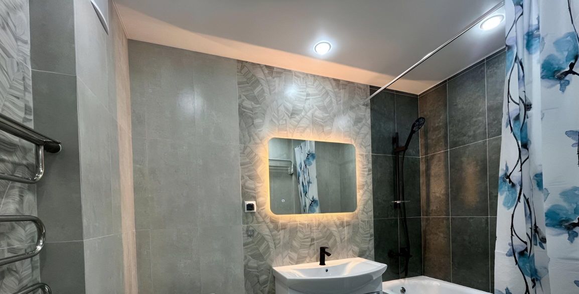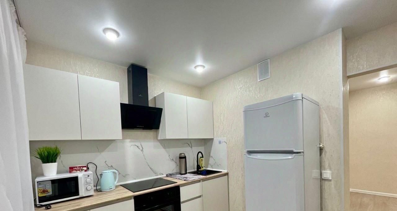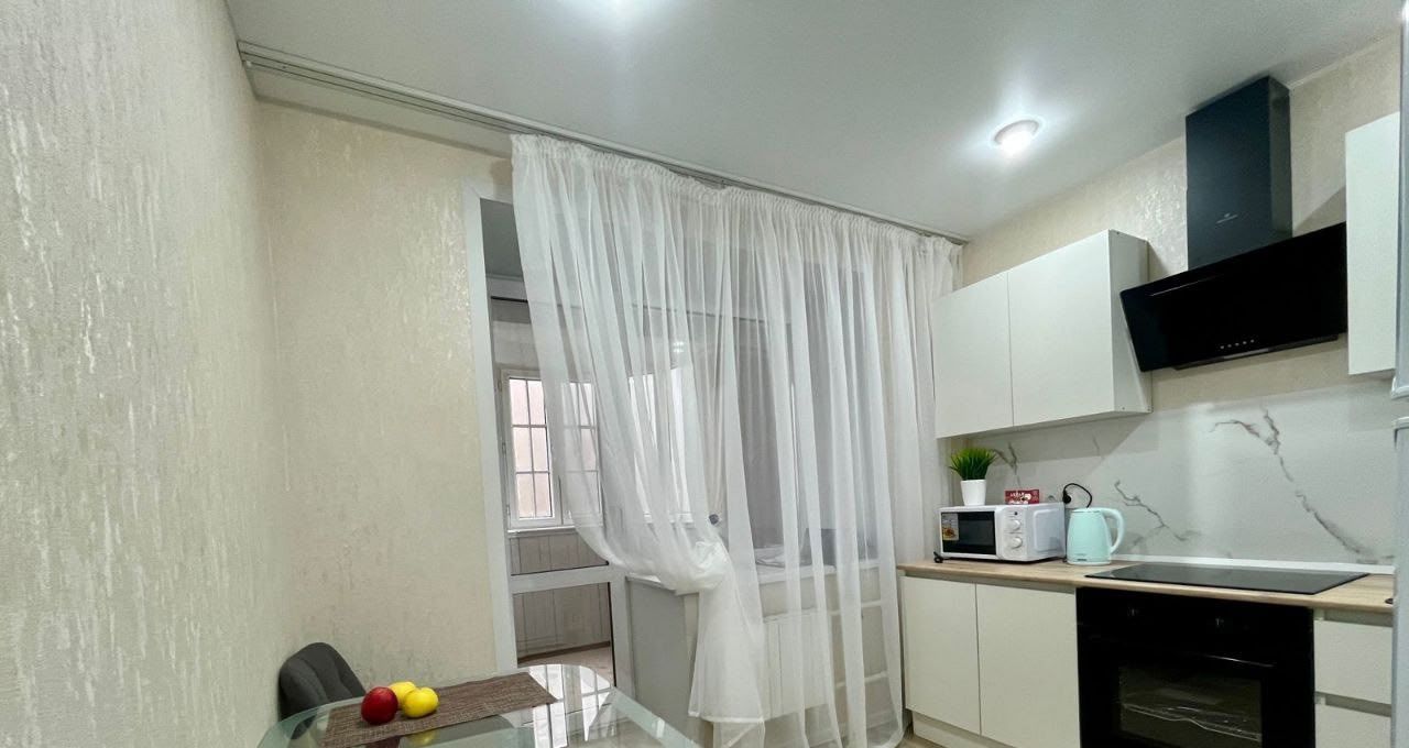 В квартире сделан качественный ремонт. Просторная комната и кухня оборудованы всей необходимой мебелью, а также современной техникой: кондиционер, холодильник, телевизор и стиральная машина. Санузел совмещённый, есть ванна, что создаёт комфортные условия для проживания. Окна выходят во двор, поэтому в квартире тихо и спокойно.