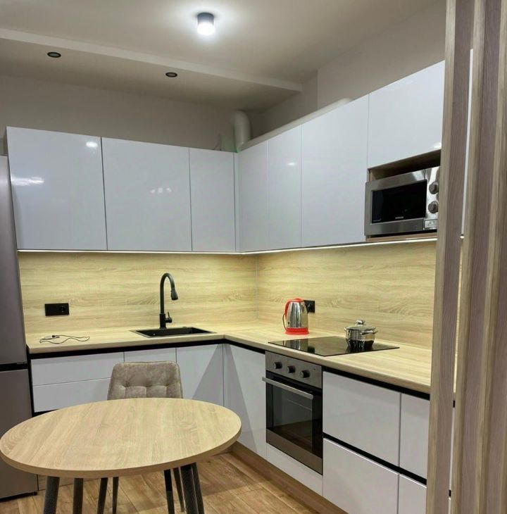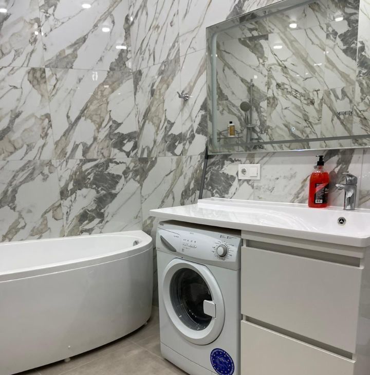 Квартира светлая и просторная, с современным ремонтом, полностью меблирована. Здесь есть всё необходимое для комфортного проживания: современная кухня с бытовой техникой, включая холодильник и стиральную машину. Удобная планировка позволяет организовать пространство по вашему вкусу. Ванная комната оснащена качественной сантехникой.