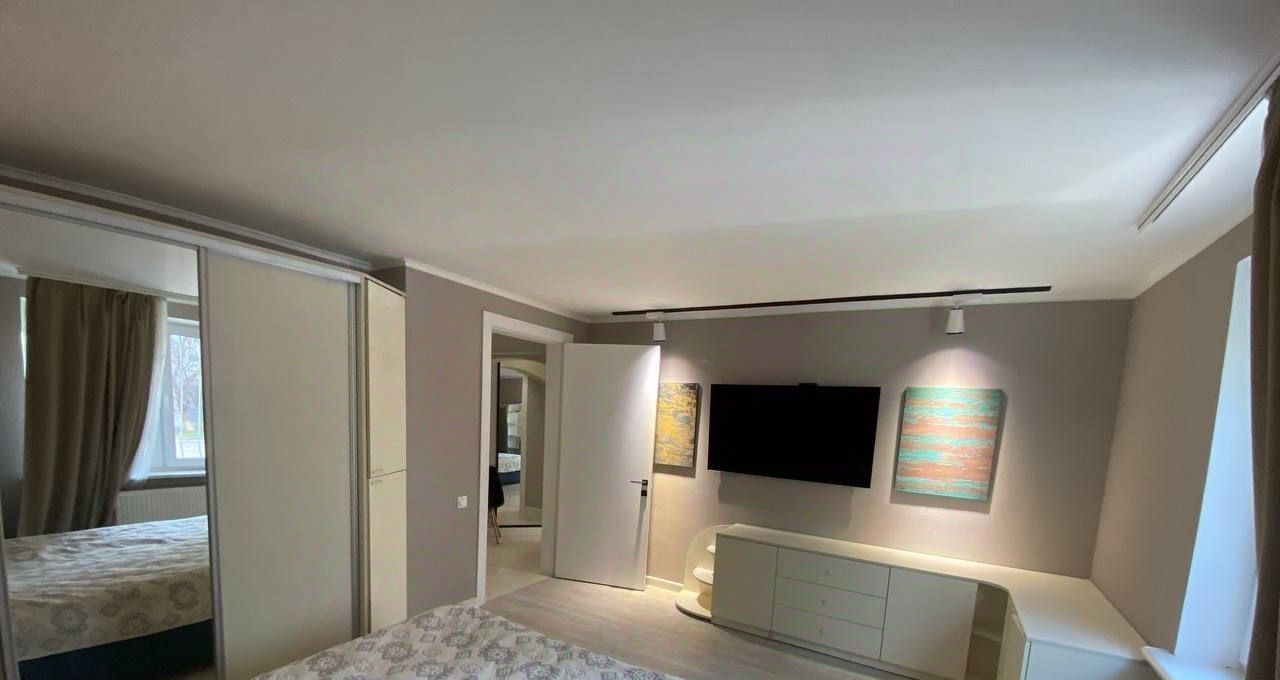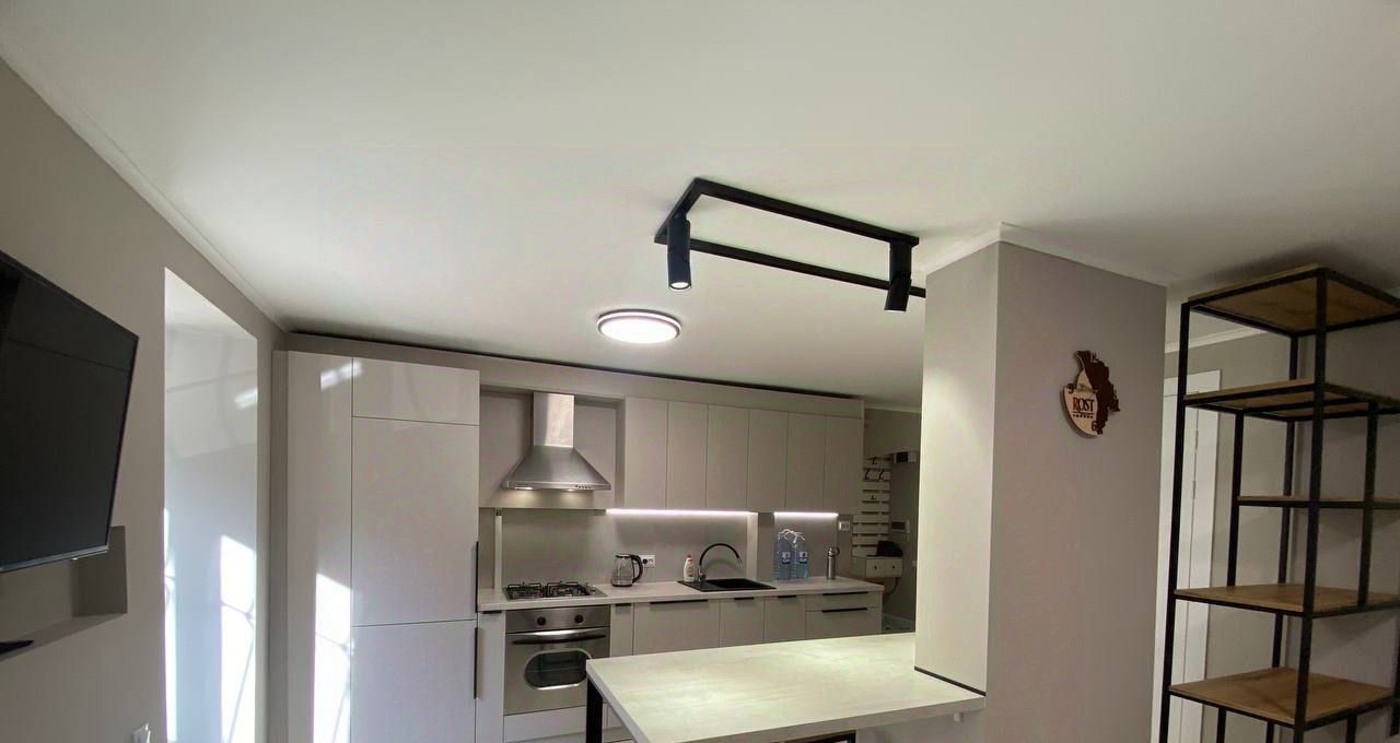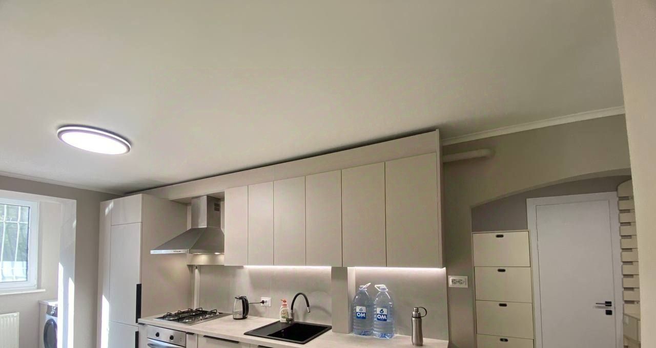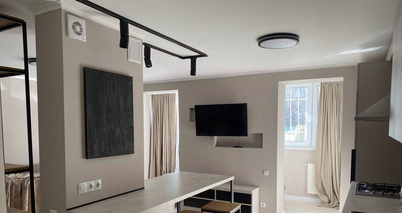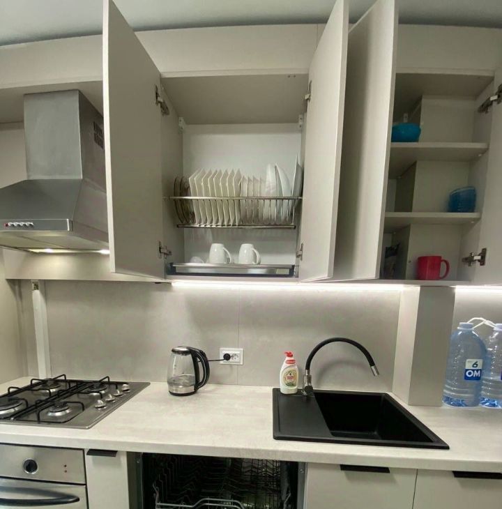 Квартира полностью меблирована и готова к комфортному проживанию. В светлой комнате установлен удобный диван, есть шкаф для одежды и рабочее место. Кухня оборудована всей необходимой техникой: холодильник, плита, духовка. Санузел совмещенный, с современной сантехникой.