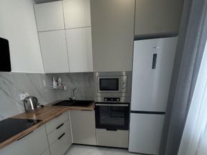 Сдаётся стильная однокомнатная квартира с дизайнерским ремонтом на 22 этаже современного дома 2021 года постройки. Общая площадь — 40 кв. м, кухня — 9 кв. м. Высота потолков 2.9 метра. Из окон открывается вид на улицу, а свежий воздух можно получить на балконе. Дом состоит из 26 этажей, а квартира находится на одном из верхних уровней, что обеспечивает тишину и уединение.