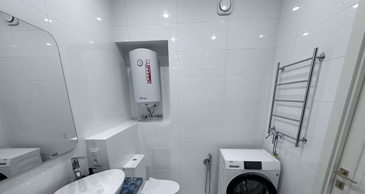 Квартира полностью обставлена и готова к комфортному проживанию. В комнате и на кухне есть вся необходимая мебель. Из техники в вашем распоряжении: кондиционер, холодильник, посудомоечная и стиральная машины, а также телевизор. В ванной комнате установлена ванна, поэтому можно расслабиться после трудового дня. Также имеется балкон, где можно наслаждаться свежим воздухом.