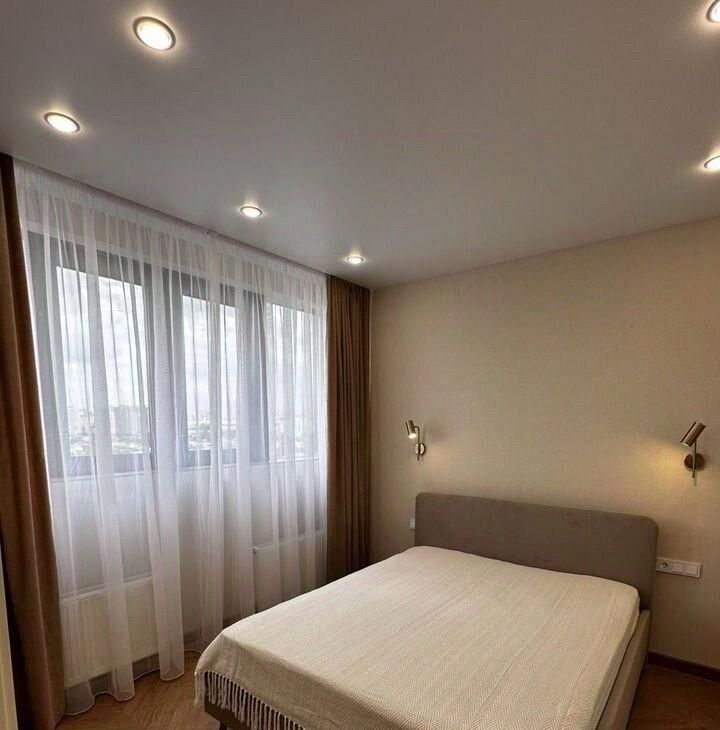 Сдаётся просторная квартира с евроремонтом на 14 этаже нового 24-этажного дома. Общая площадь квартиры составляет 50 кв. м. Окна выходят на улицу, что обеспечивает много естественного света.