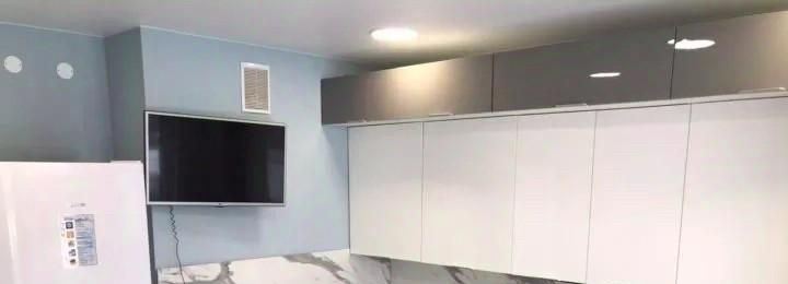 Светлая и очень просторная квартира. Площадь 44 кв. м позволила сделать удобное зонирование: большая комната и вместительная кухня.