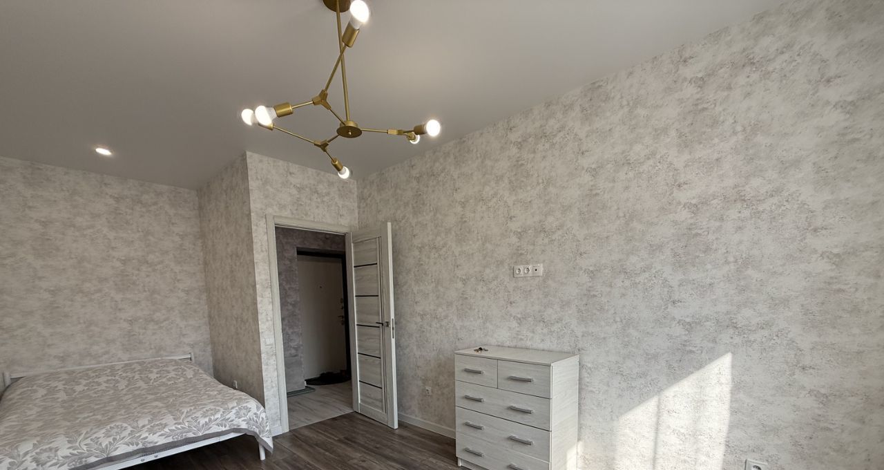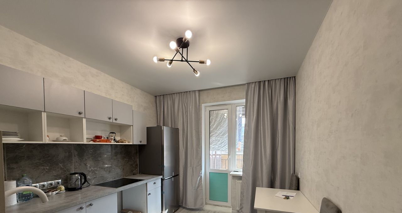 Сдаётся уютная однокомнатная квартира в современном доме, расположенном по адресу: Россия, Республика Татарстан, Казань, Тэцевская улица, 4В. Общая площадь квартиры составляет 32.6 кв. м, а кухня - 12 кв. м. Квартира находится на 4 этаже 7-этажного кирпичного дома, построенного в 2021 году.
