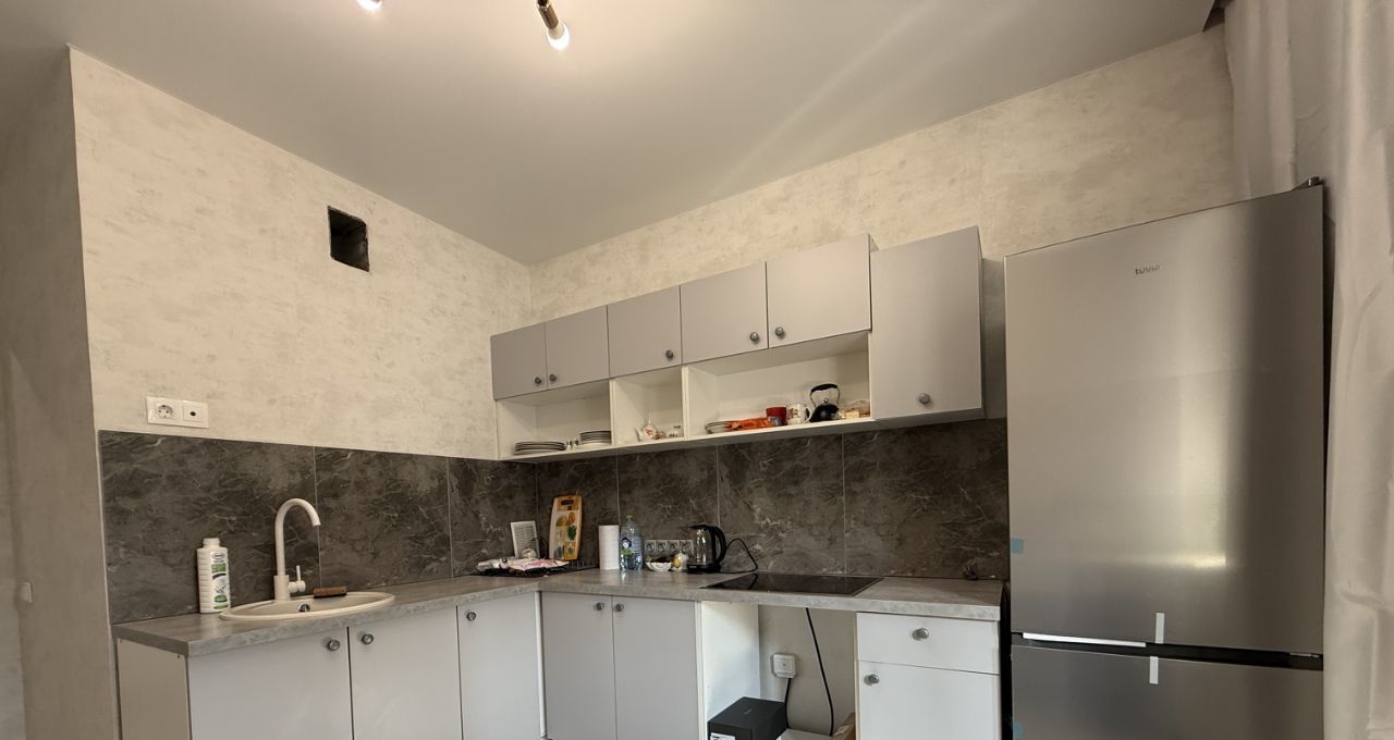 В квартире сделан качественный евроремонт, что создаёт приятную атмосферу для жизни. Просторная кухня оснащена всей необходимой мебелью и техникой, включая холодильник и стиральную машину. Комната меблирована и готова к проживанию. Санузел совмещённый, а окна выходят во двор, поэтому в квартире всегда тихо и спокойно.