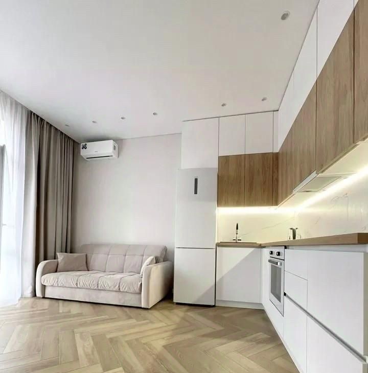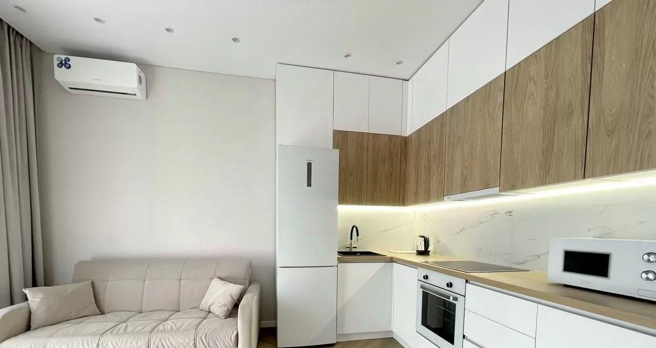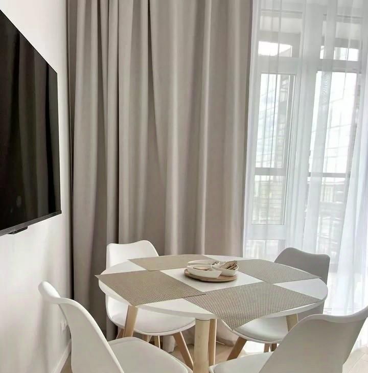 Квартира оформлена с дизайнерским ремонтом, который создаёт атмосферу уюта и комфорта. В комнате и на кухне есть вся необходимая мебель. Для вашего удобства установлены кондиционер, холодильник, посудомоечная и стиральная машины, а также телевизор. Ванная комната оборудована ванной, где можно расслабиться после насыщенного дня.