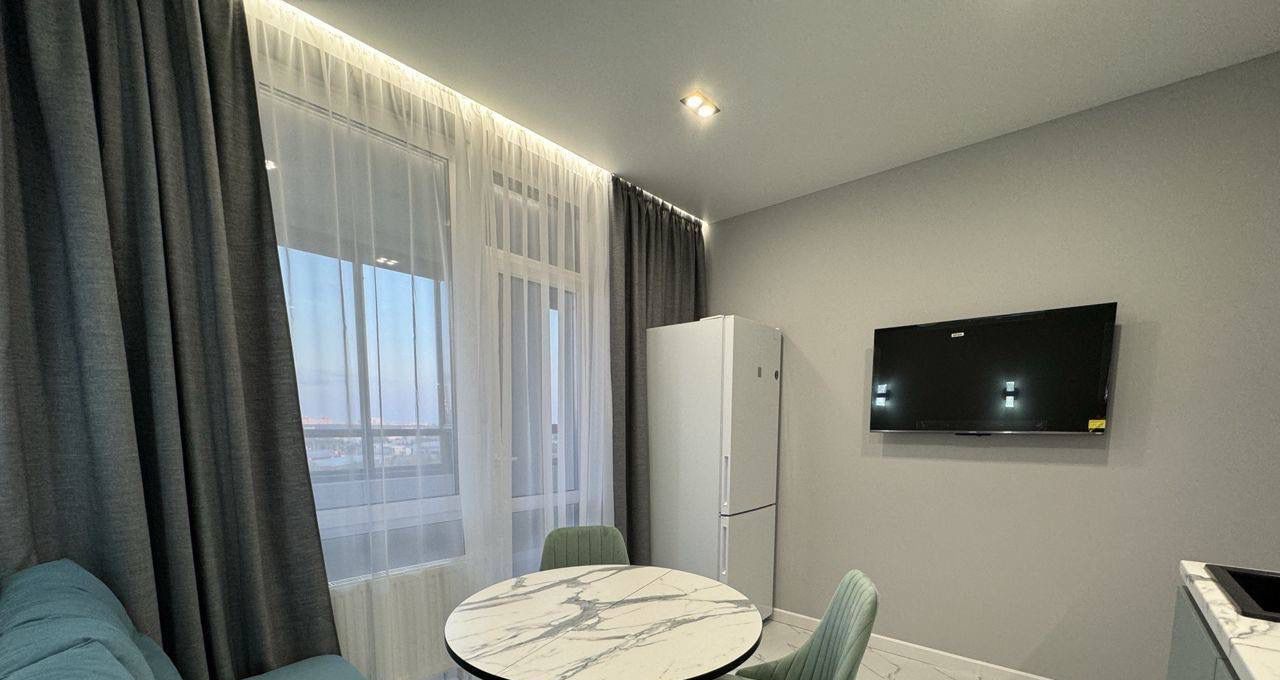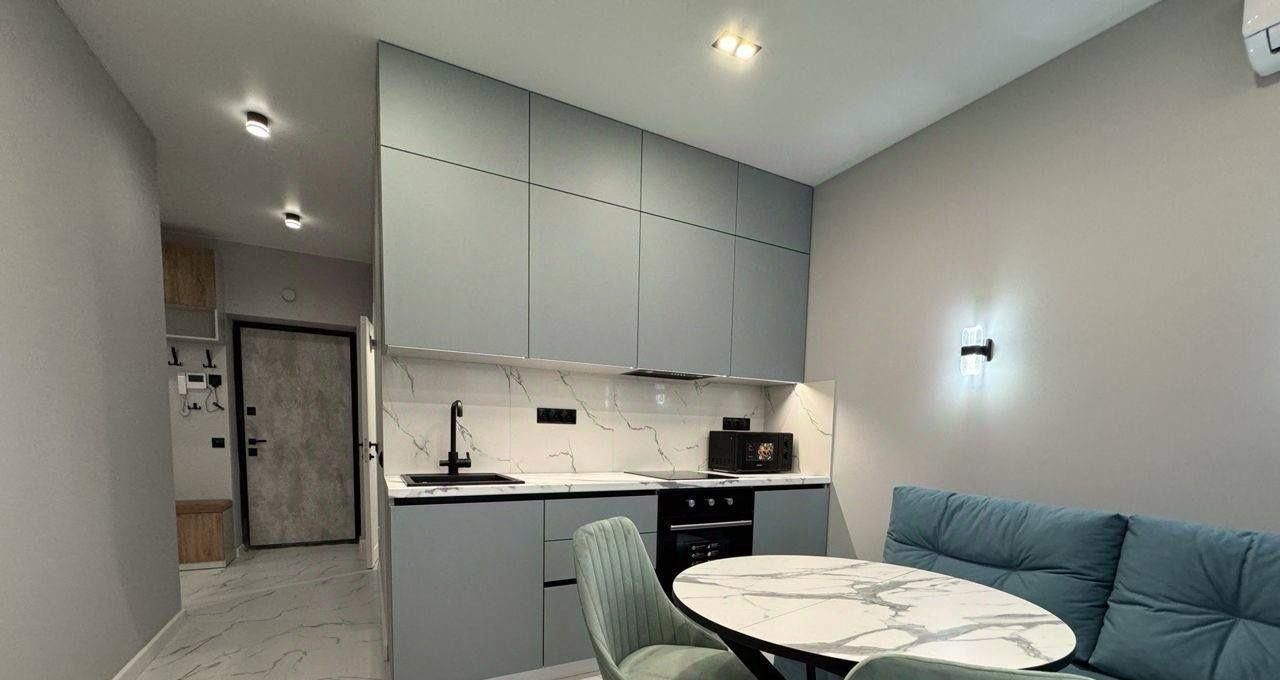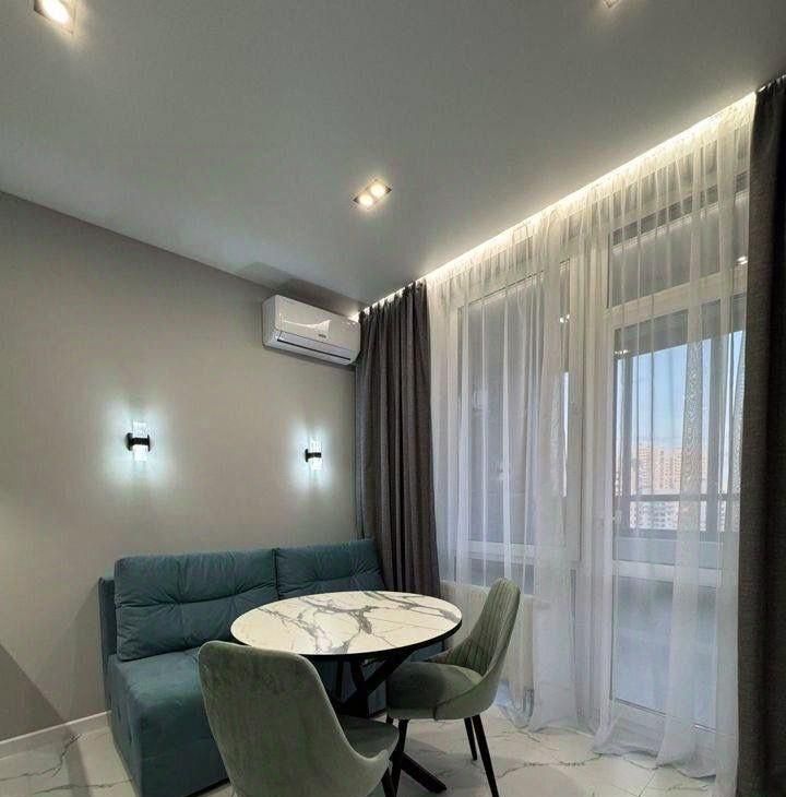В квартире сделан современный ремонт, есть вся необходимая мебель и техника для комфортного проживания. Просторная комната и удобная кухня позволят вам чувствовать себя как дома. Санузел совмещённый, выполнен в светлых тонах, что придаёт ощущение свежести и чистоты.