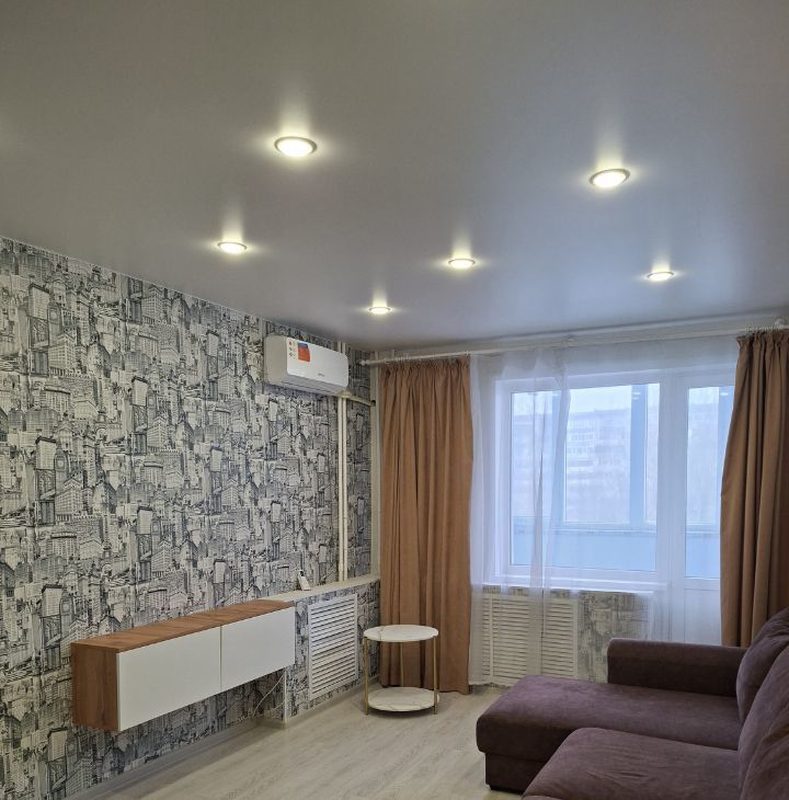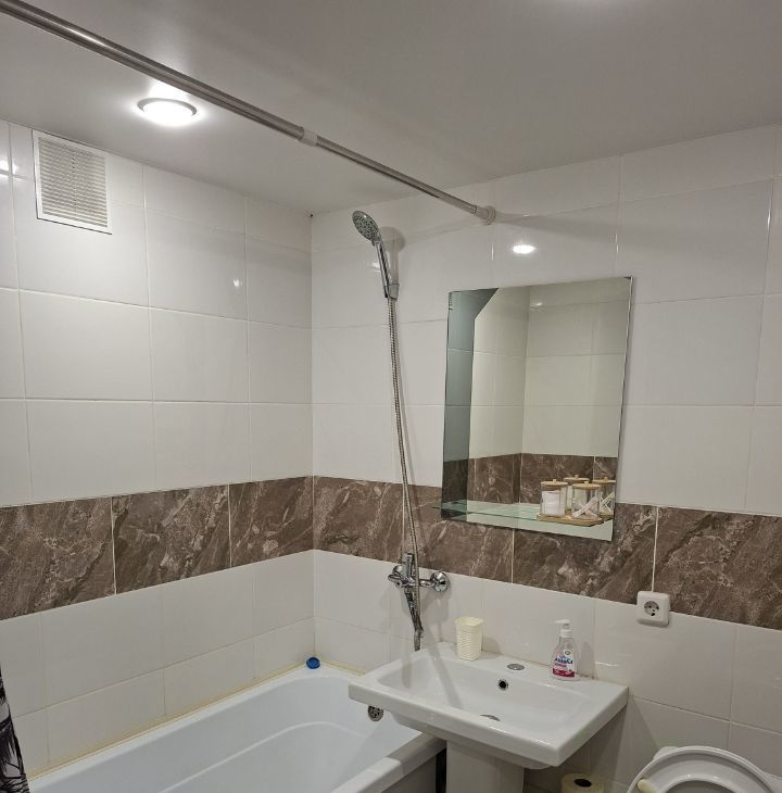 Квартира полностью готова для комфортного проживания. В комнате и на кухне есть современная мебель. Для вашего удобства установлены кондиционер, холодильник и стиральная машина. Ванная комната оборудована ванной, а совмещенный санузел сделан с вниманием к деталям.