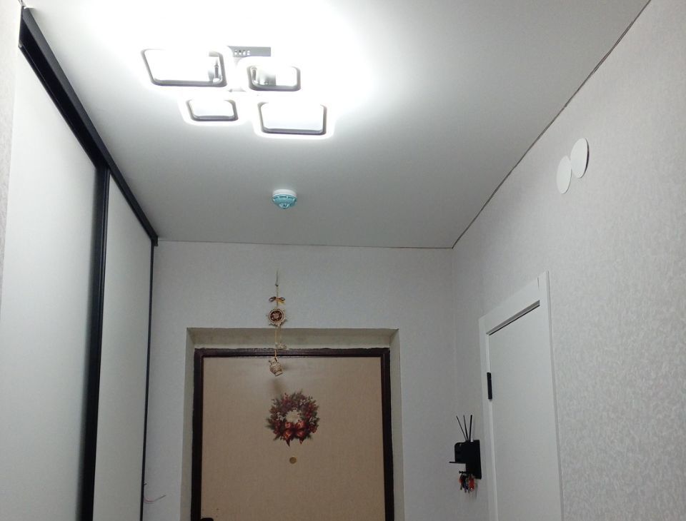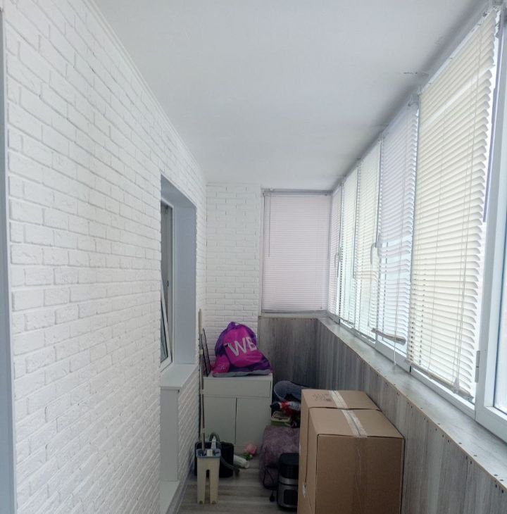 В коридоре на полу плитка и встроенный шкаф купе. Балкон утеплен, требуется только замена окон.