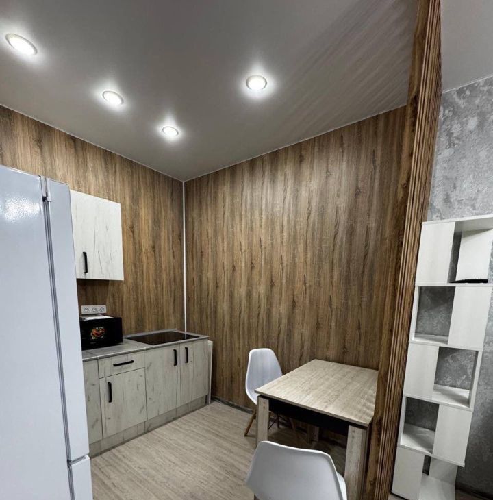 Квартира с современным ремонтом, полностью готова к проживанию. В просторной комнате есть удобная мебель, обеспечивающая комфортное размещение. Кухня оборудована всей необходимой техникой, включая плиту, холодильник и микроволновую печь. Ванная комната в идеальном состоянии, с новой сантехникой и стиральной машиной.