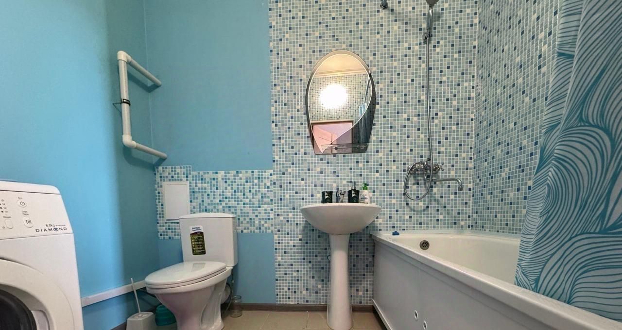 Квартира полностью готова для комфортного проживания. В ней есть всё необходимое: современная мебель на кухне и в комнате, а также вся необходимая техника — кондиционер, холодильник, телевизор и стиральная машина. Просторная кухня площадью 13 квадратных метров позволяет с удобством готовить и принимать гостей. Ванная комната оснащена ванной, а окна выходят на улицу, что обеспечивает много естественного света. Также в квартире есть балкон для отдыха на свежем воздухе.
