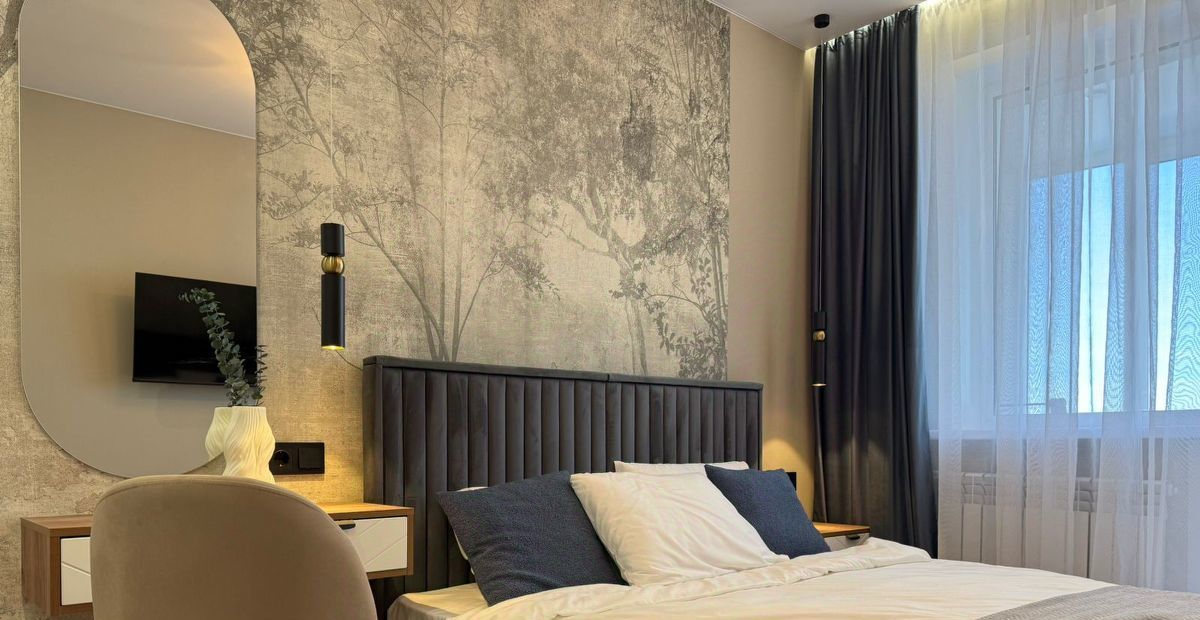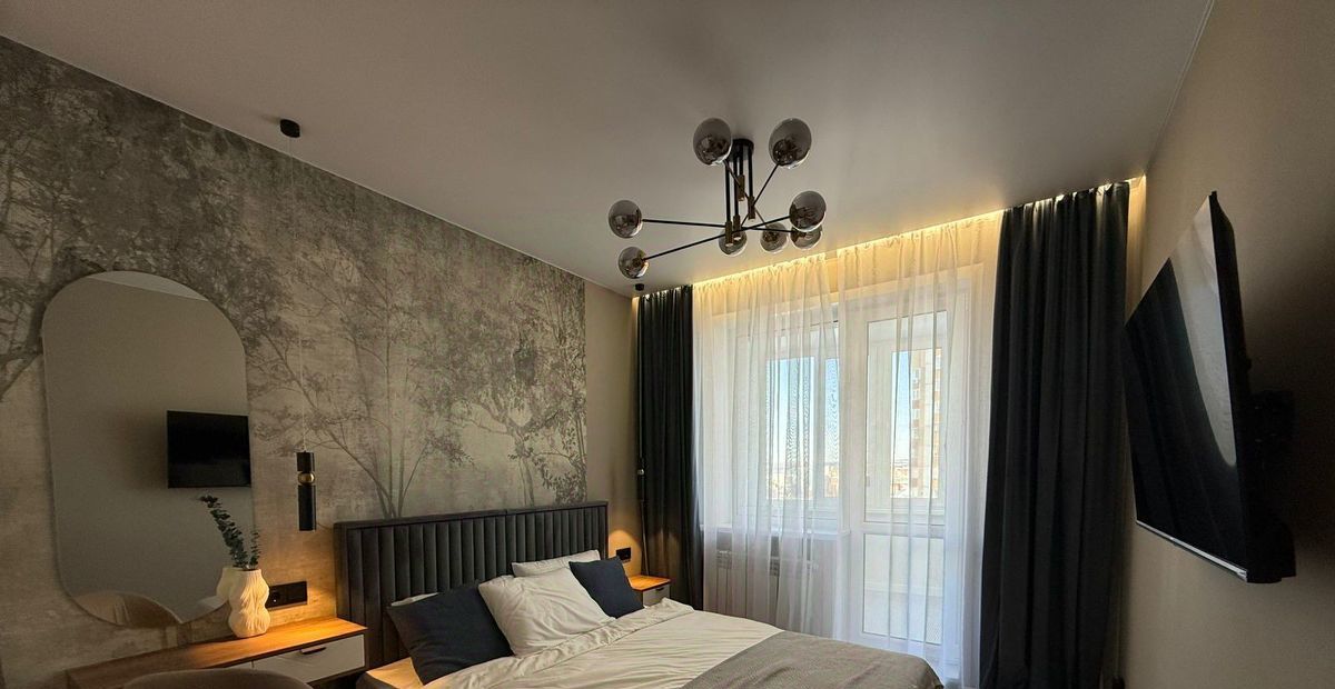 В квартире сделан современный дизайнерский ремонт. Просторная кухня с полноценным комплектом мебели и техники: холодильник, посудомоечная машина и стиральная машина. В комнате есть удобная мебель и телевизор. Кондиционер обеспечит комфорт в жаркие дни. Окна выходят как на улицу, так и во двор, поэтому в квартире всегда светло и уютно. Совмещенный санузел оборудован ванной, что добавляет комфорта вашему проживанию. А также есть балкон, где можно насладиться свежим воздухом.