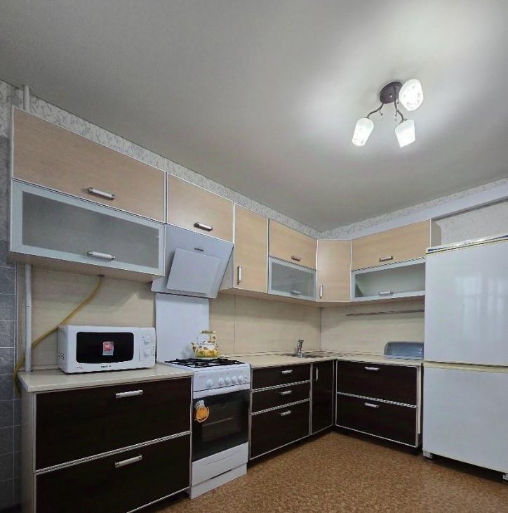 В квартире есть вся необходимая мебель. Из техники: кондиционер, холодильник, стиральная машина, микроволновая печь, газовая плита, вытяжка, пылесос. Большая длинная лоджия. В коридоре есть отдельная зона- гардеробная и дополнительный шкаф.