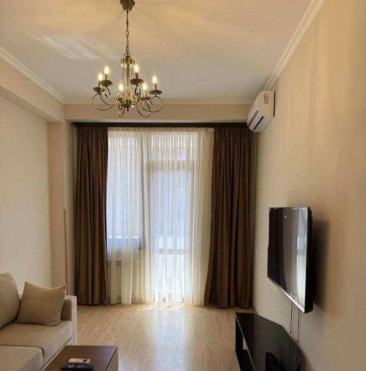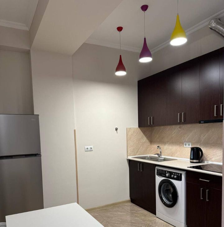 В квартире выполнен качественный евроремонт, установлена современная мебель как в комнате, так и на кухне. В вашем распоряжении вся необходимая техника: кондиционер, холодильник, телевизор и стиральная машина. Ванная комната оборудована душевой кабиной, что добавляет комфорта.