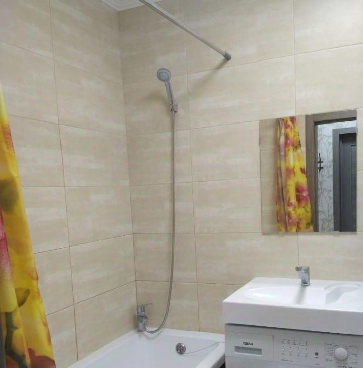 В квартире сделан косметический ремонт, поэтому она выглядит светлой и ухоженной. На кухне и в комнате есть вся необходимая мебель, а также установлены холодильник и стиральная машина. Санузел совмещённый, оборудован ванной, что создаёт комфортные условия для проживания.