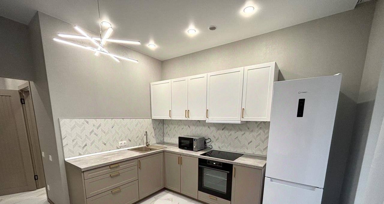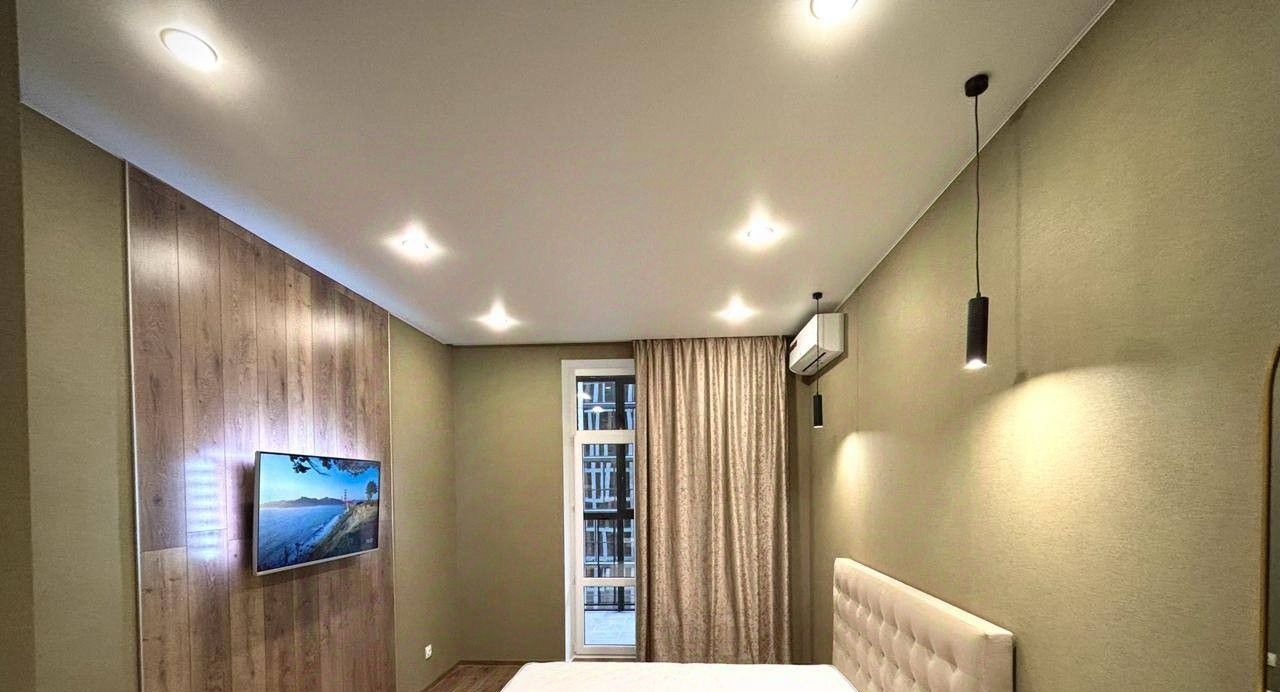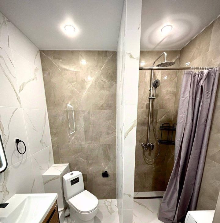 В квартире выполнен стильный современный ремонт, установлена вся необходимая мебель и техника для комфортного проживания. Удобная планировка позволяет рационально использовать пространство. Санузел совмещённый, оборудован качественной сантехникой.