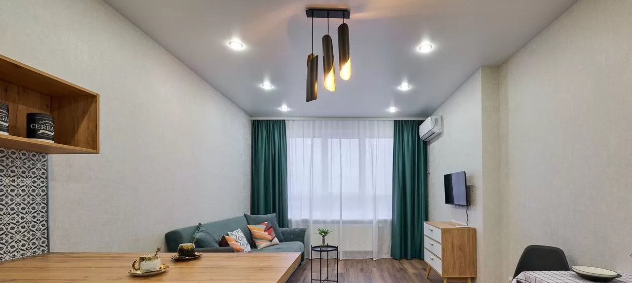 Красивая, чистая, уютная. Все новое. Вся необходимая мебель и техника для комфортного проживания остается в квартире, даже посуда.