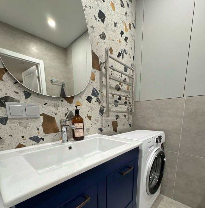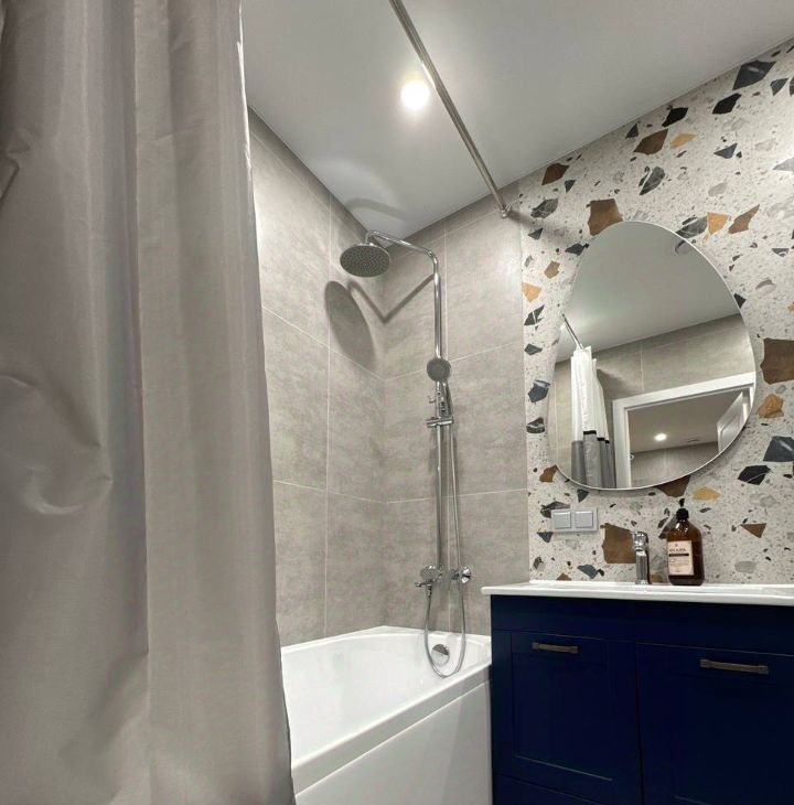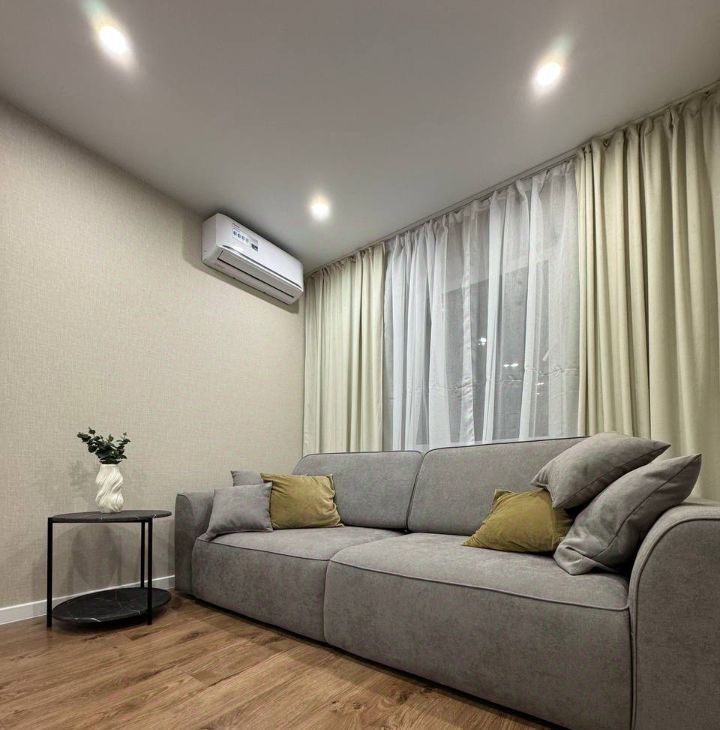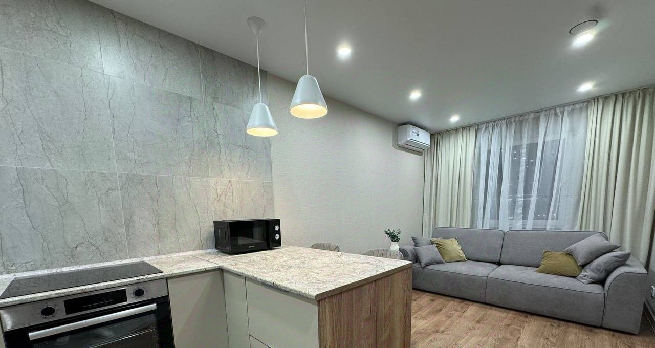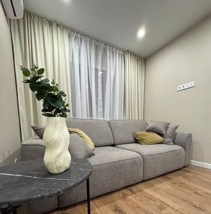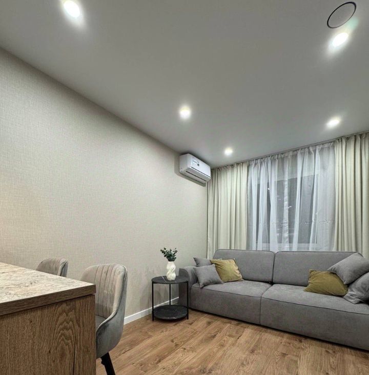 В квартире сделан дизайнерский ремонт, который подчеркнет ваш стиль и создаст атмосферу уюта. Комната и кухня полностью меблированы, поэтому можно сразу заехать и жить. В наличии вся необходимая техника: кондиционер, холодильник, телевизор и стиральная машина. Санузел совмещенный, есть ванна для вашего удобства.