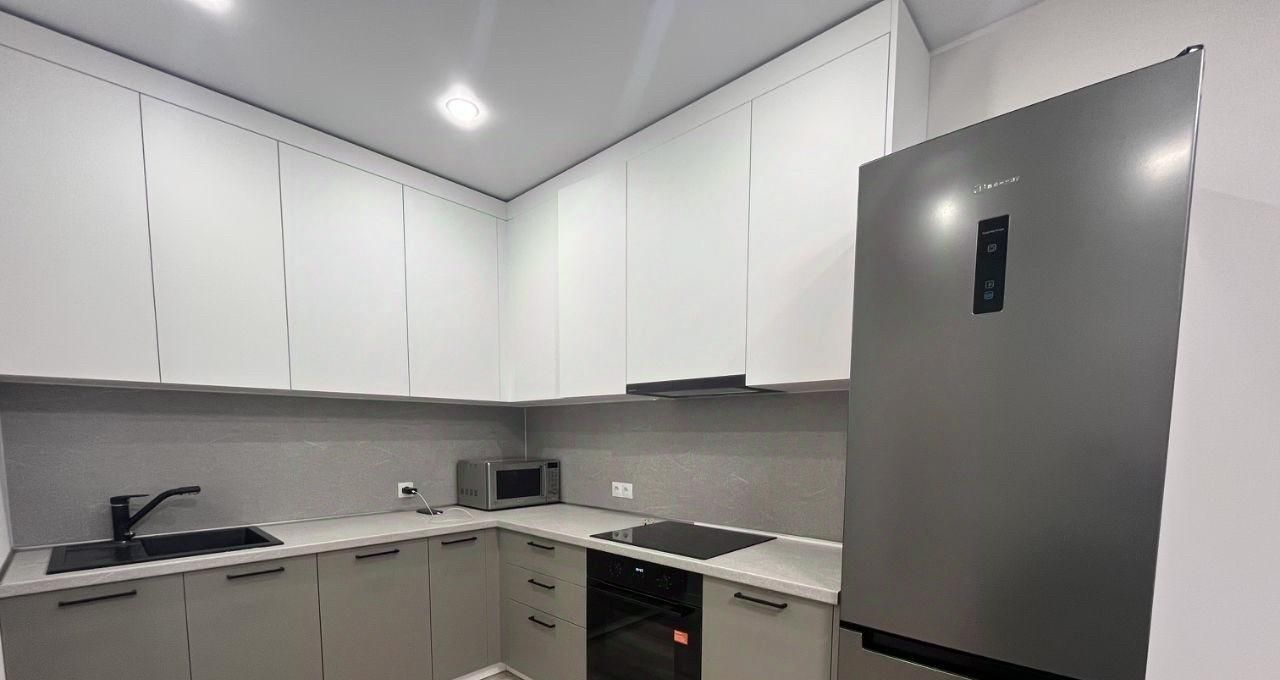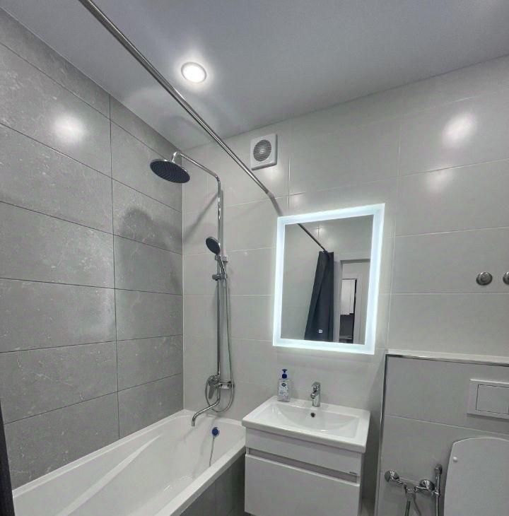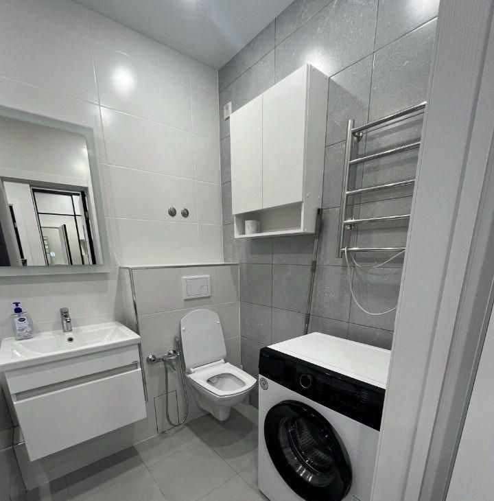 В квартире выполнен евроремонт, установлена вся необходимая мебель как на кухне, так и в комнате. В вашем распоряжении вся необходимая техника: кондиционер, холодильник, посудомоечная и стиральная машины, а также телевизор. Санузел совмещенный, оснащен ванной. Есть балкон, где можно отдохнуть на свежем воздухе.