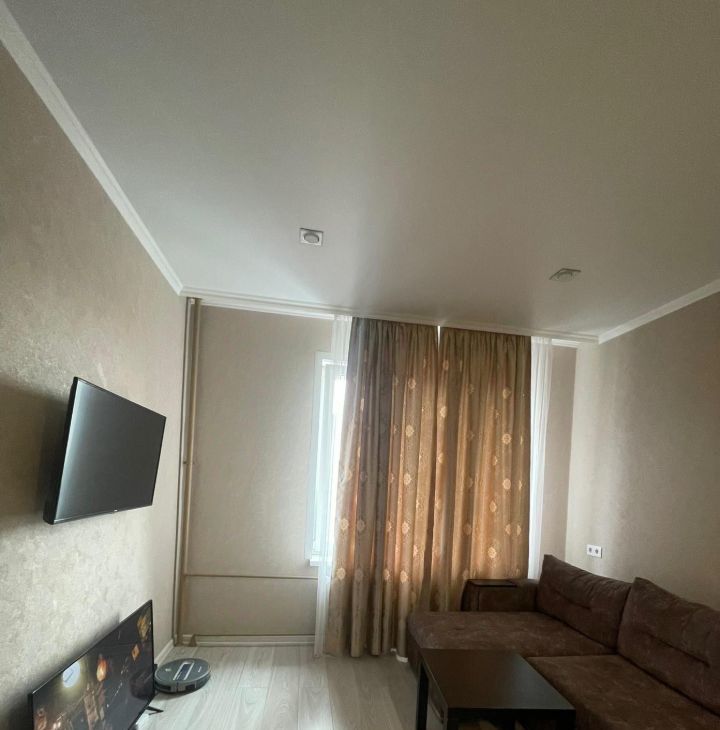 Квартира радует свежим евроремонтом и продуманной обстановкой. В комнате и на кухне есть вся необходимая мебель, чтобы вы могли сразу переехать и начать жить без лишних хлопот. На кухне вас ждёт холодильник, а в комнате — телевизор. В ванной комнате установлена ванна, где можно расслабиться после трудового дня. Из комнаты есть выход на балкон, где можно насладиться утренним кофе или вечерним отдыхом.