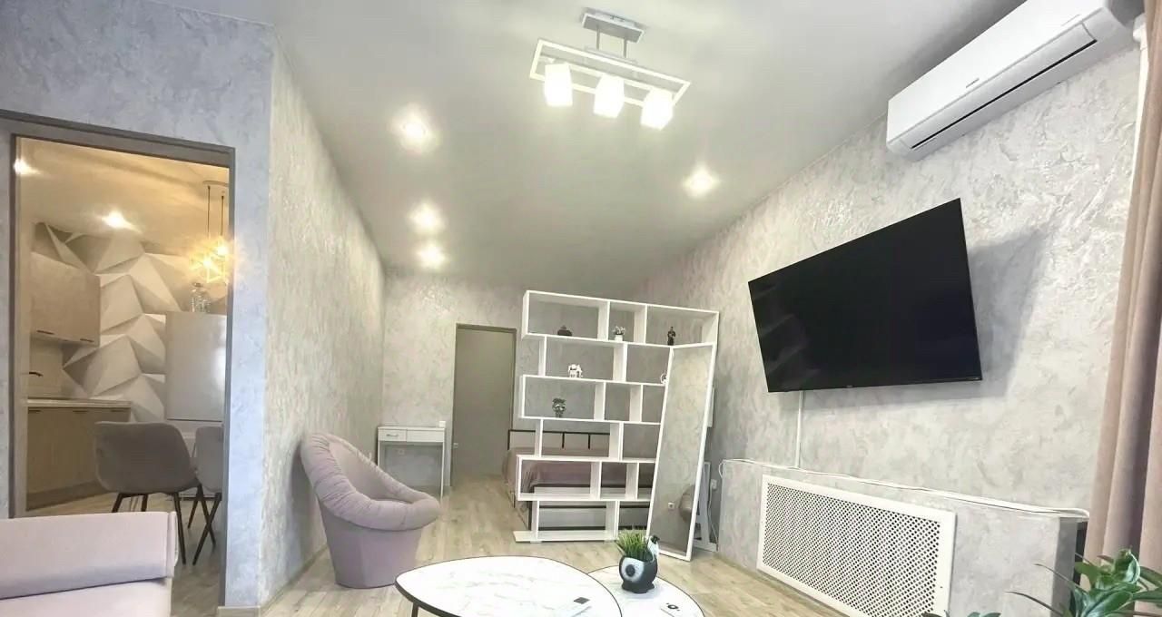 В квартире сделан евроремонт, что создаёт современную и приятную атмосферу. Есть всё необходимое для комфортного проживания: кондиционер, холодильник, телевизор и стиральная машина. Мебель на кухне и в комнате позволит вам сразу же поселиться и наслаждаться проживанием. Санузел совмещённый, оборудован ванной. Также имеется балкон, где можно отдохнуть на свежем воздухе.