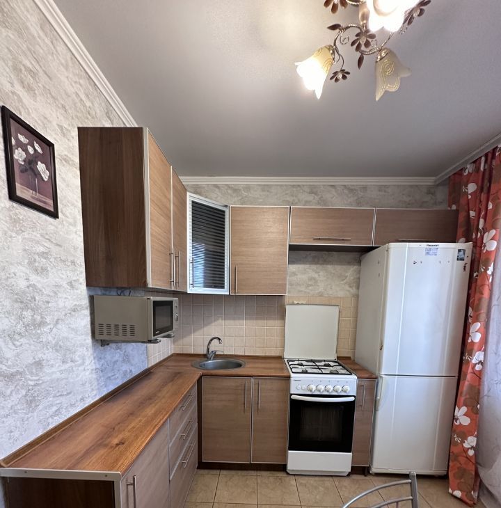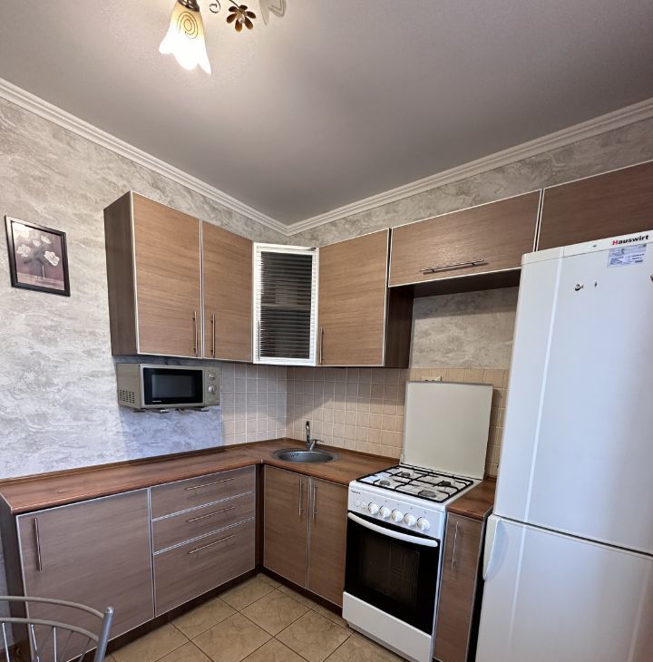 В квартире имеется все необходимое : кухонный гарнитур , газовая плита , духовой шкаф , микроволновая печь , посуда , раскладной диван , телевизор , душевая кабина , стиральная машина. В квартире имеется просторный балкон!