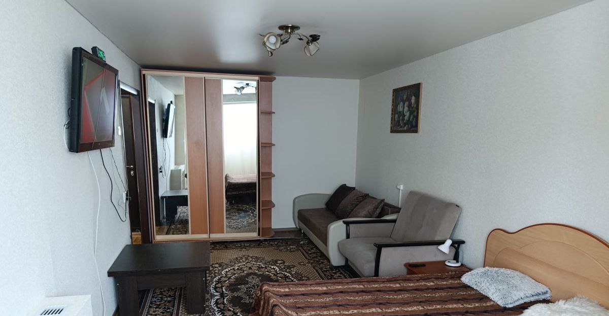 В квартире сделан косметический ремонт, что придаёт ей свежий и опрятный вид. В комнате имеется необходимая мебель, диван , в том числе кровать и шкаф. два телевизора . Кухня площадью 6 кв. м оборудована всей необходимой техникой: кондиционером, холодильником, телевизором и стиральной машиной. Ванная комната совмещённая, с полноценной ванной. Для комфортного проживания в квартире проведён интернет.