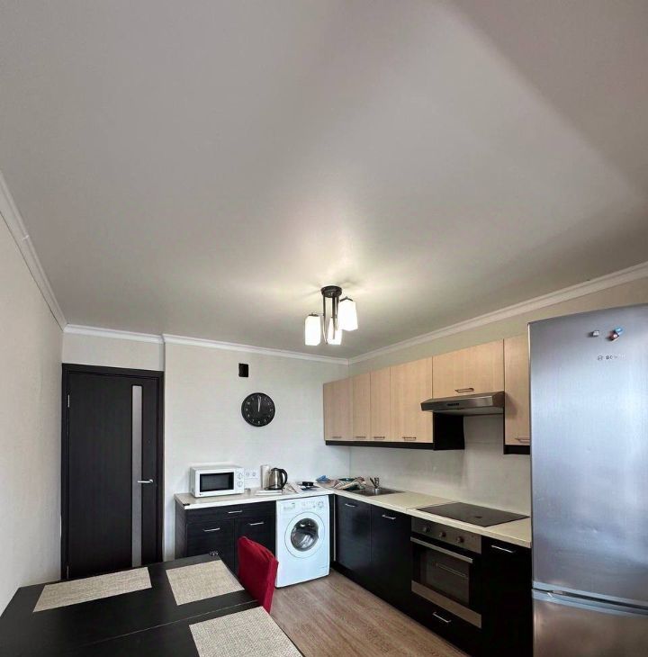 * Большая кухня, полностью укомплектованная техникой (плита, духовой шкаф, микроволновка и т.д.). Отдельный плюс — выход с кухни на утепленную лоджию (6 кв.м). Это дополнительное пространство, которым можно пользоваться как комнатой или, рабочей зоной или, зоной отдыха круглый год.