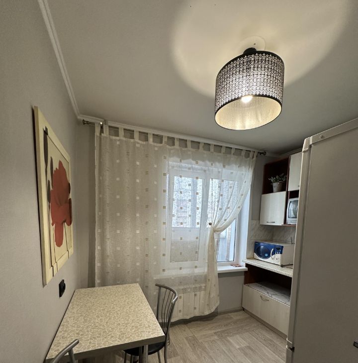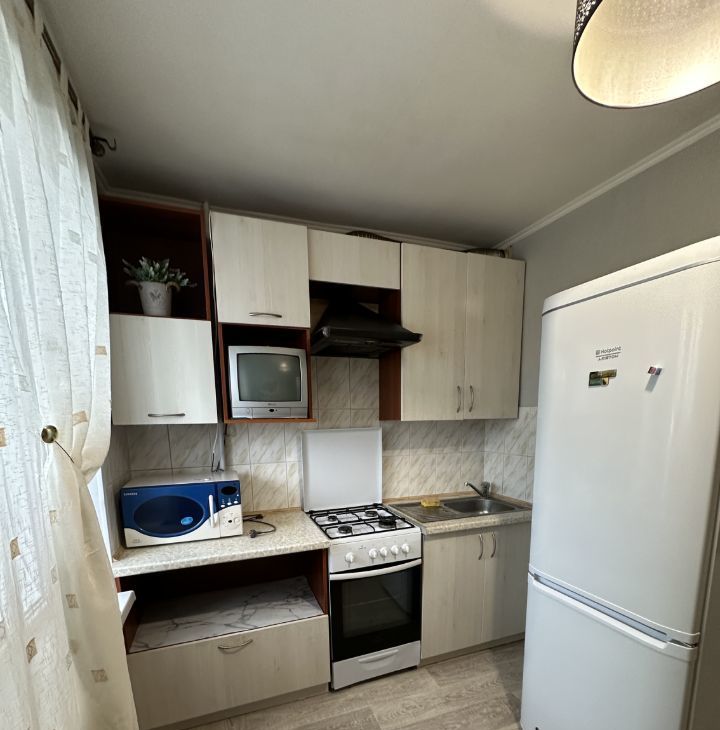В квартире сделан косметический ремонт, она полностью готова к проживанию. Есть вся необходимая мебель на кухне и в комнате, а также техника: холодильник, телевизор и стиральная машина. Санузел совмещенный, оборудован ванной. Лоджия станет отличным местом для отдыха.
