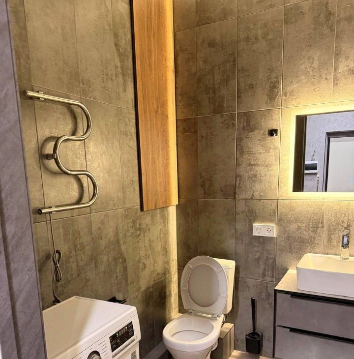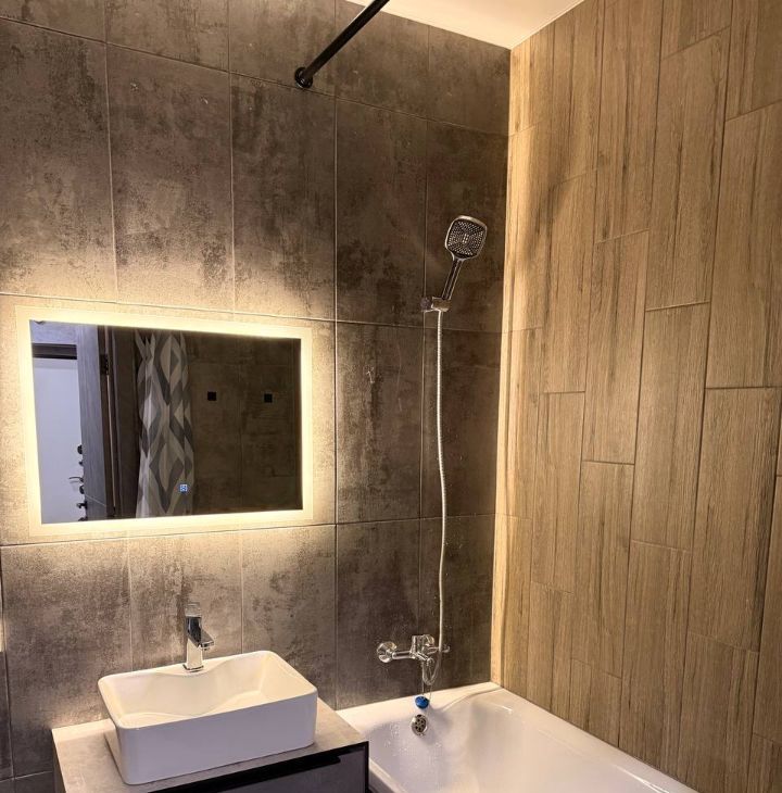 В квартире сделан дизайнерский ремонт. Все необходимые условия для комфортной жизни: на кухне и в комнате есть мебель, а в ванной комнате — ванна. Из техники в вашем распоряжении кондиционер, телевизор, стиральная машина и холодильник. Проведен интернет, поэтому всегда будете на связи.