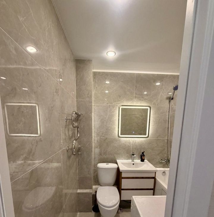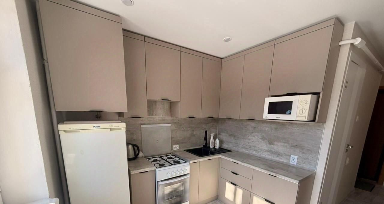 Квартира полностью готова для комфортного проживания. Внутри выполнен качественный евроремонт. На кухне и в комнате имеется вся необходимая мебель. Для удобства жильцов установлены холодильник, телевизор и стиральная машина, поэтому можно сразу въезжать и жить. В ванной комнате — полноценная ванна, что добавляет комфорта.
